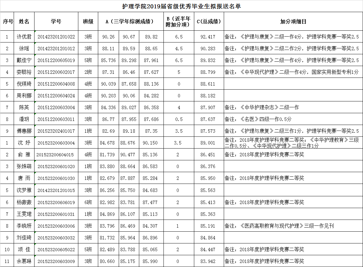 根据《浙江省教育厅办公室关于对2019届浙江省普通高等学校优秀毕业生进行确认的通知》精神,结合校、院《省级优秀毕业生评定办法》,经过个人申报、班级推荐和学院评审,现将2019届省级优秀毕业生拟报送名单公示如下,公示期为五天。在公示期内有任何异议,请于2019年2月25日17:00前,以书面形式向学院学生工作办公室反映,所反映问题要求实事求是、客观公正、线索清楚,反对借机诽谤诬告。