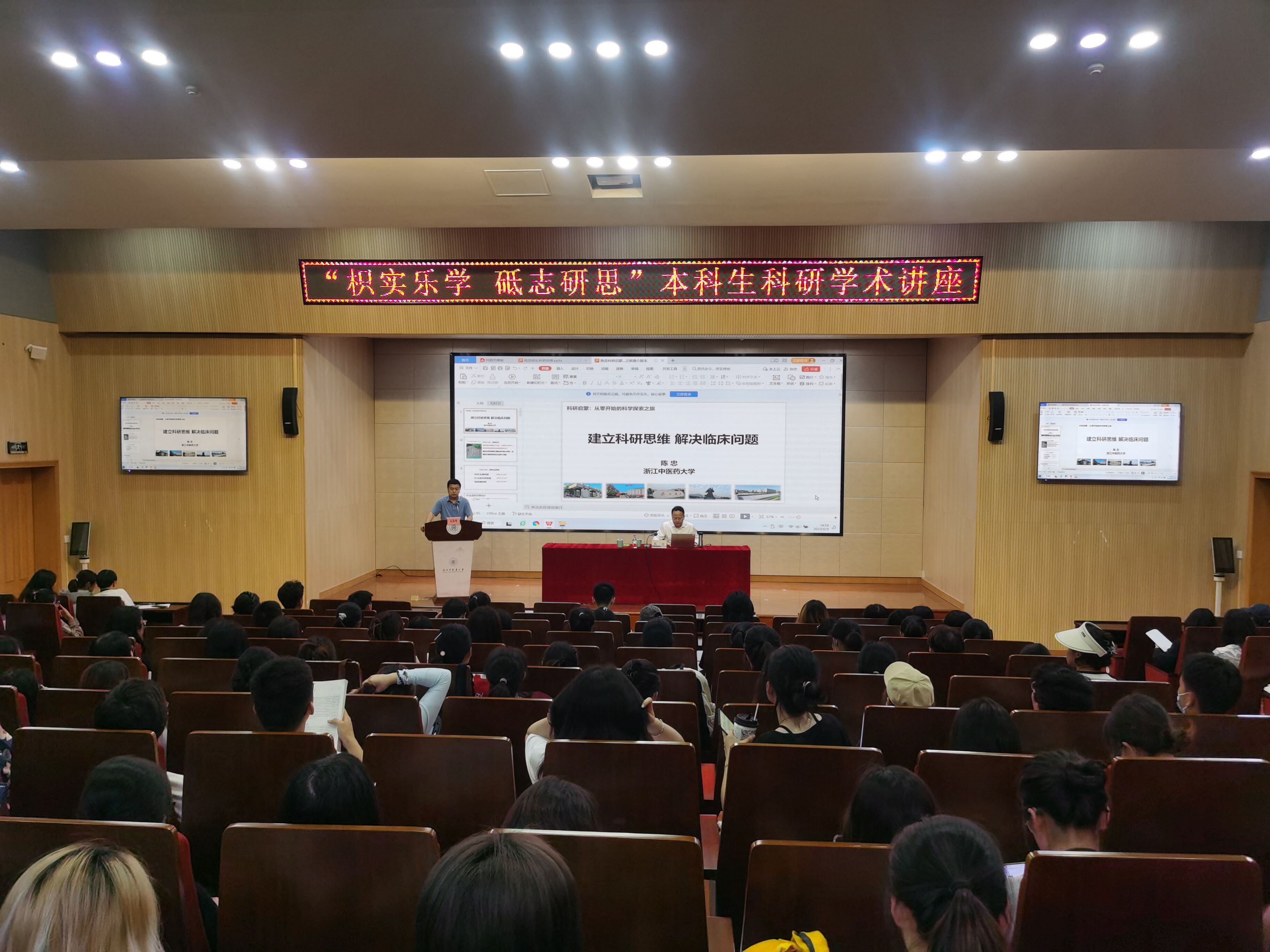 为活跃我校的学术气氛,开阔本科生科研视野,发掘学生科研兴趣,69日下午,校长陈忠教授应邀为我校本科生作了题为《从零开始的科学探索之旅——建立科研思维 解决临床问题》的专题讲座。讲座由学工部部长石磊峰主持。