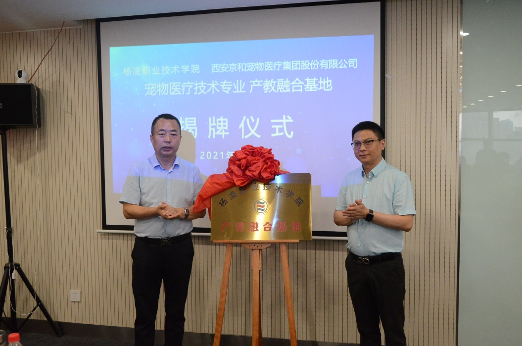 在西安京和动物医院有限公司,胡俊鹏和医院董事长孙均共同为产教融合基地揭牌。张振仓代表学校与医院签订了校企深度合作协议。宠物科技教研室主任吴礼平汇报了“宠医菁英班”工作进展情况,重点介绍了“双主体、三循环、四对接”人才培养模式。今年会优秀毕业生、西安京和动物医院京宝分院院长赵曼作为毕业生代表,分享了她在京和的工作经历。