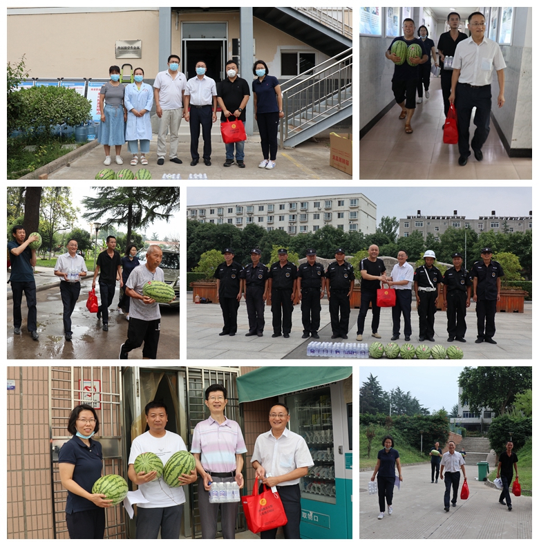 活动中,校工会负责人带领校工会一行分别到三个校区看望并慰问了高温下依然坚持在教学、管理和服务工作一线的教职工、医护人员、保安人员,为他们送去了学校的关爱和夏日的“清凉”,对他们在高温酷暑仍坚守工作岗位的敬业奉献精神表达了问候和谢意。坚守岗位的一线教职工和工作人员纷纷表示,感受到了学校和工会的关怀,一定要履职尽责,踏实工作,确保学期末学校各项工作顺利有序进行。