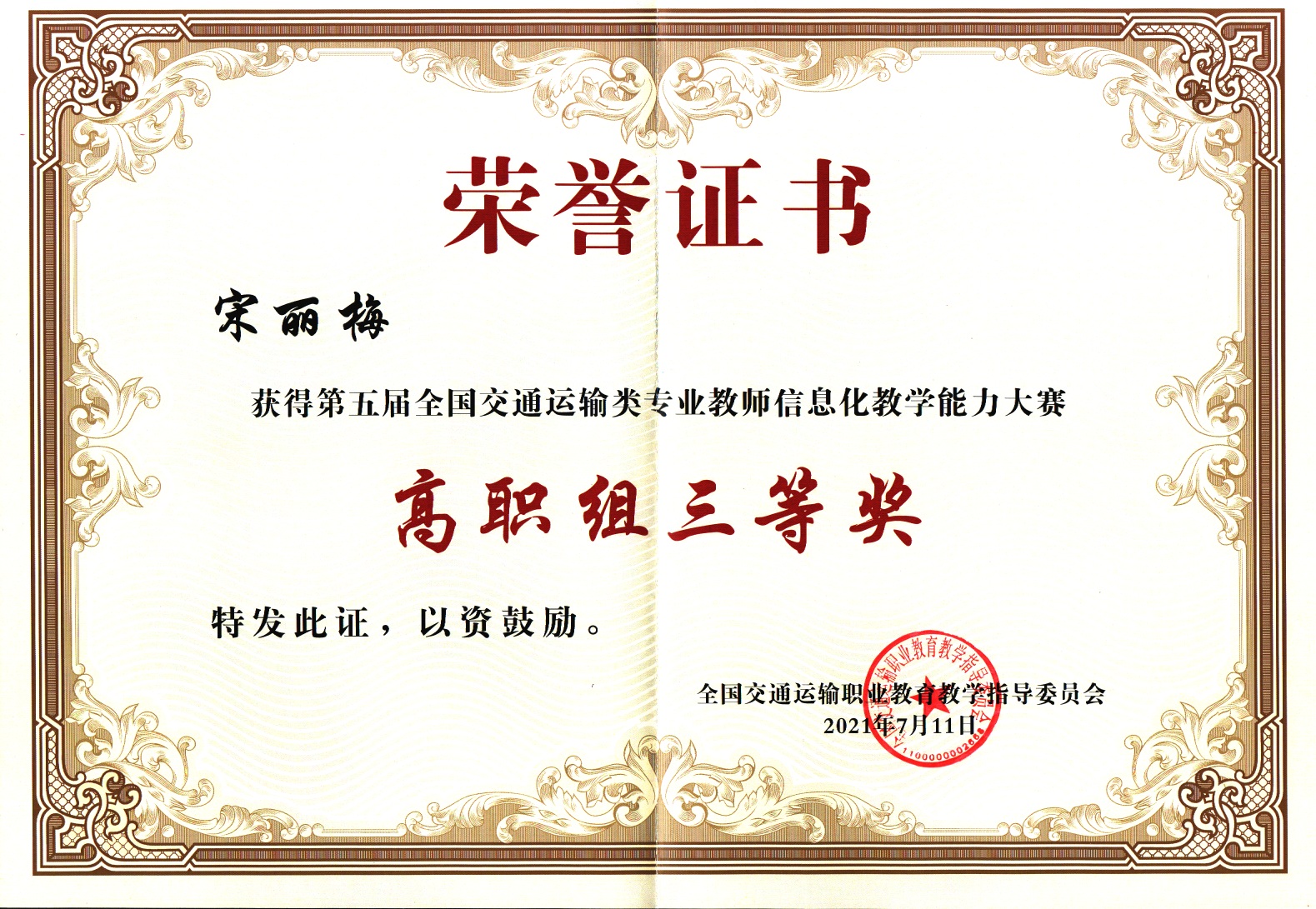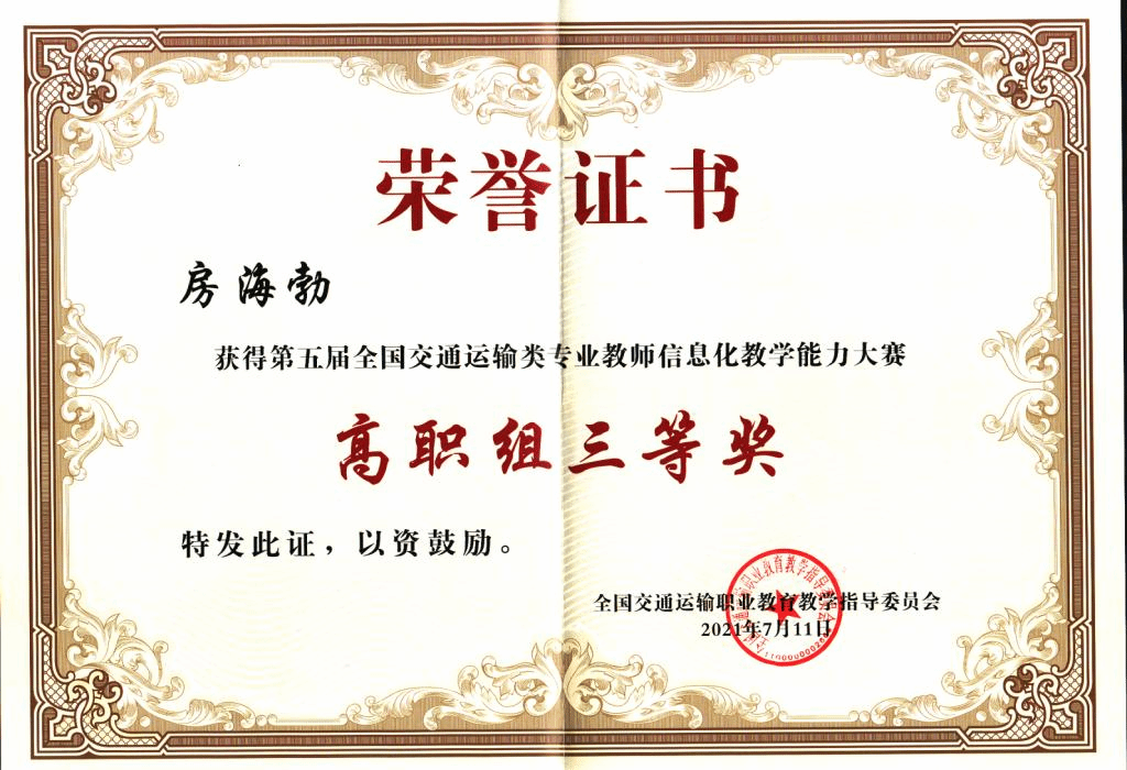 7月8日至11日,第五届全国交通运输类专业教师信息化教学能力大赛总决赛在河南交通职业技术学院举行,今年会交通与测绘工程学院教师房海勃、宋丽梅分别获三等奖,学校获信息化教学创新典范奖。