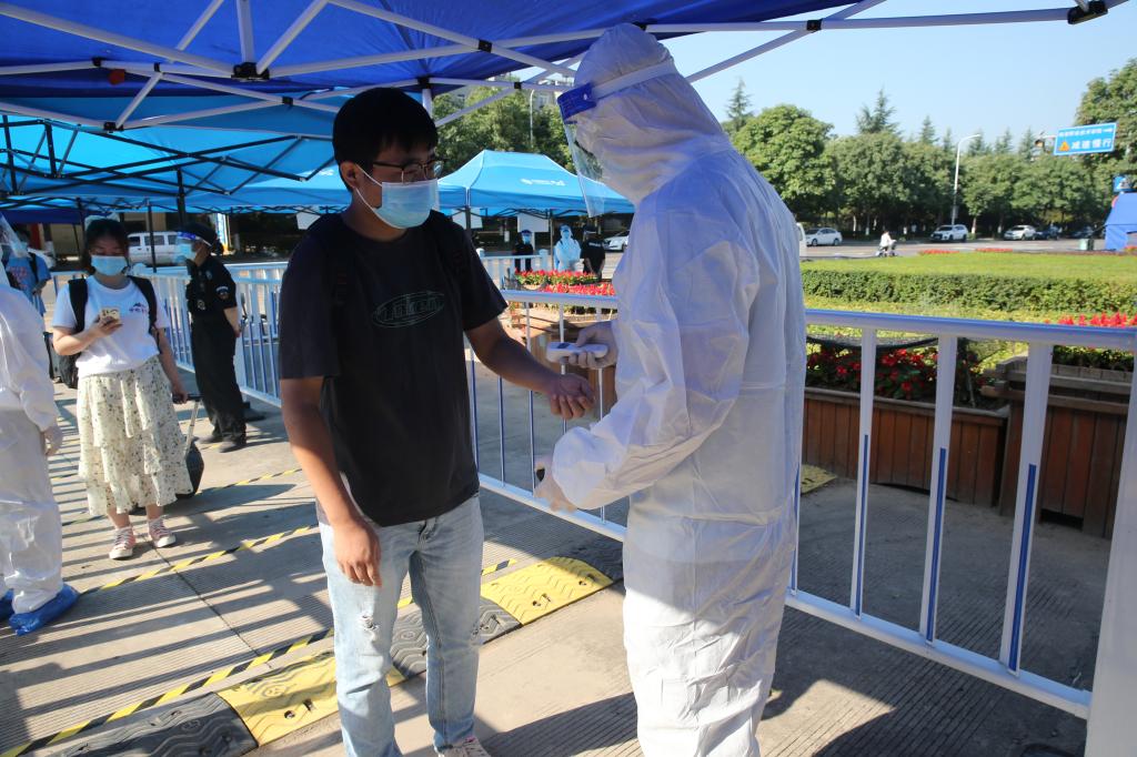 本次演练模拟了学生返校后出现的发热等可疑症状的应急处置场景。上午9点30分,学校安保人员及学生志愿者在查验返校学生的健康码、行程码,检测体温是否正常时,一名学生出现体温异常,复测后仍旧异常,志愿者立即向疫情防控办公室报告这一情况。疫情防控办公室按照学校新冠肺炎应急处置预案,迅速启动应急处置工作。安保人员迅速封锁现场,并管控现场人员,同时志愿者将体温异常学生带至空旷处;防控办成员到达现场,将情况上报学校疫情防控领导小组组长,要求发热学生加戴N95口罩和防护手套;医疗应急组立即带领发热学生前往临时隔离点,并对发热学生的密切接触者开展流调。随后,防控办成员呼叫120负压救护车将发热学生转运至示范区医院,后勤保障组人员开始对校门口场所进行消杀,门禁安防组暂时封闭校园,医疗应急组安排专车将密切接触者转运至校内隔离区进行隔离观察。隔离人员转运后。后勤保障组再次对校门口临时隔离点进行全面消杀。