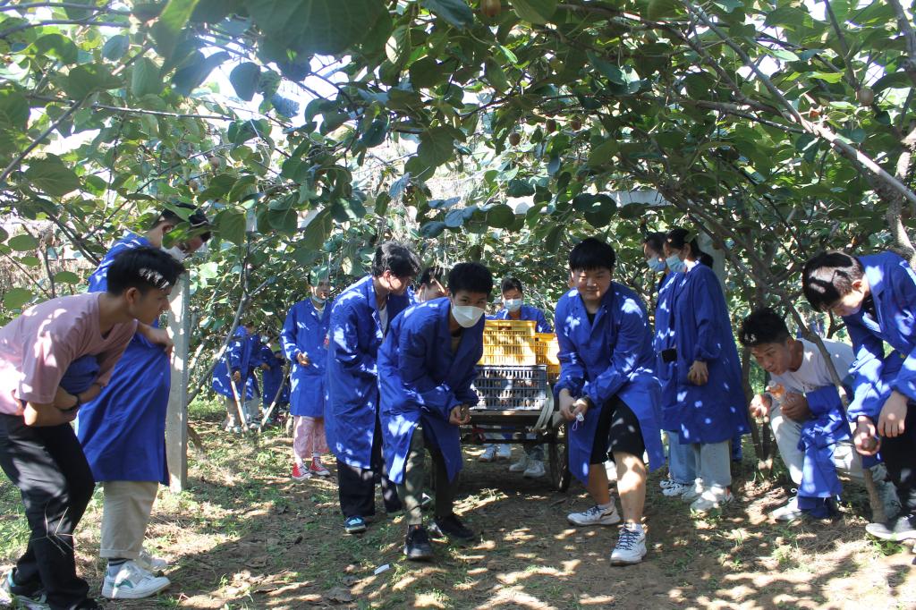 农业技术员为同学们讲解了猕猴桃生长特性、果树田间栽培技术、采摘和后储等相关知识,并传授采摘技巧。同学们随即投入到热火朝天的劳动实践中,小组包干、互相协作、仔细采摘,不时询问技术员施肥、疏花疏果、病虫害防治等专业问题,大家争先恐后,你追我赶,一筐筐果子在同学们高涨的劳动情绪中被摘了下来。经称量,同学们共采摘猕猴桃3000余斤。