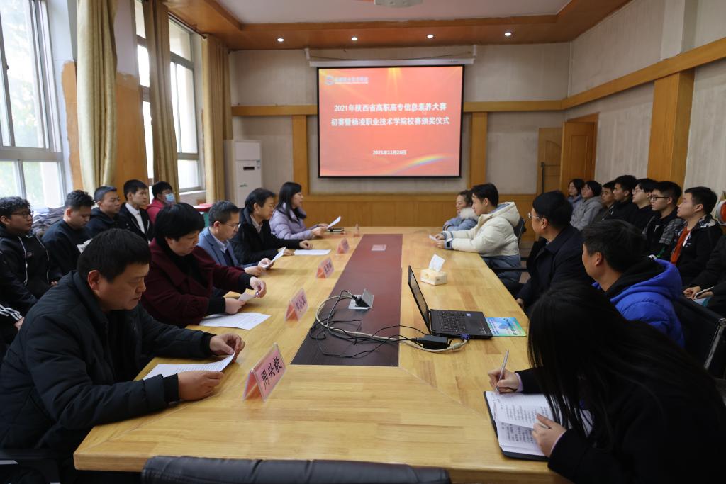 11月26日下午,2021年全国高职高专院校信息素养大赛杨凌职院校赛颁奖仪式在南校区举行。校党委委员、党政办公室主任张朝晖,图书馆馆长问建军以及获奖学生参加了仪式。