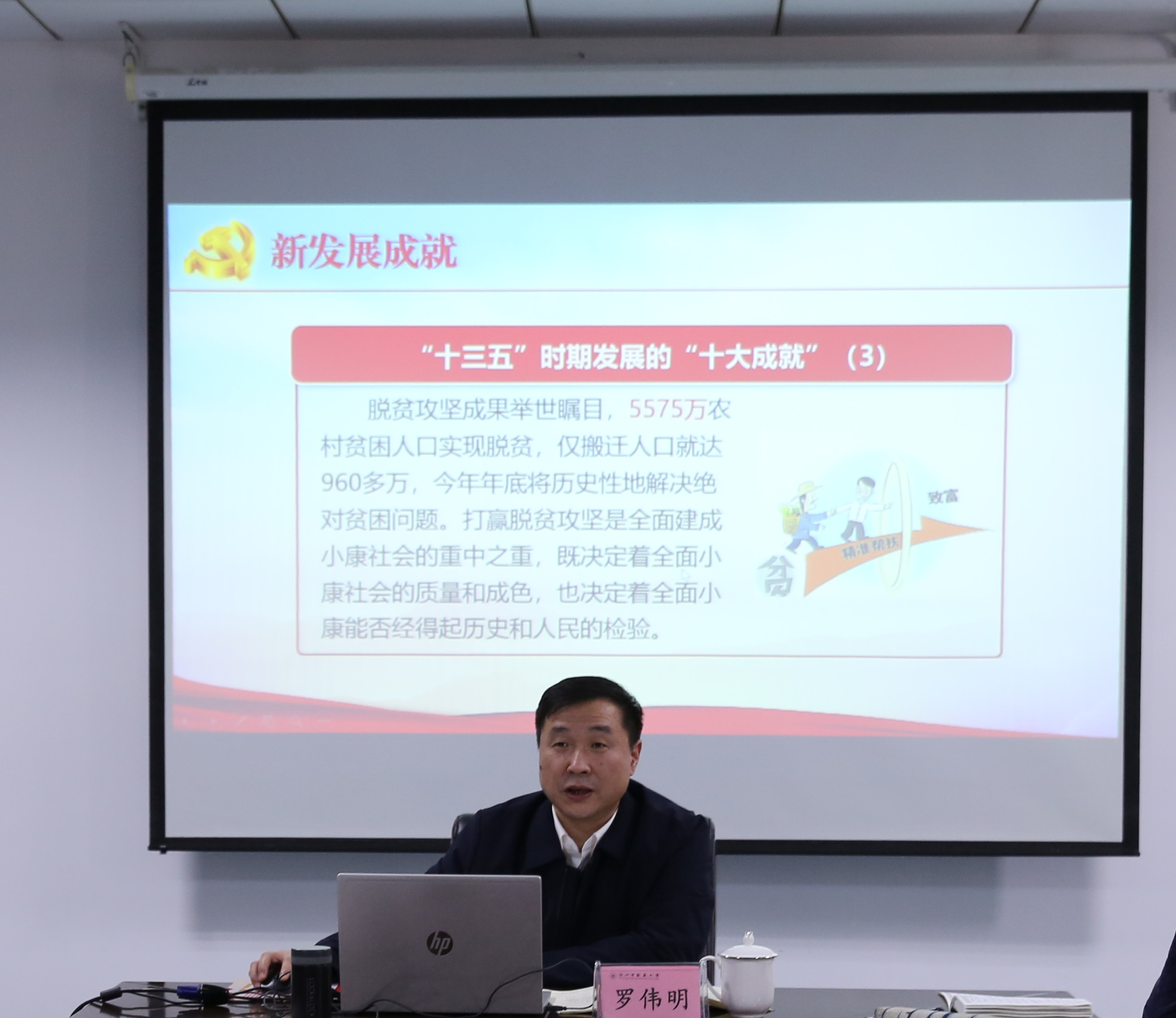 罗伟明副校长指出,党的十九届五中全会是我们党在全面建成小康社会胜利在望、全面建设社会主义现代化国家新征程即将开启的重要历史时刻召开的一次十分重要的会议,是在我国进入新发展阶段、实现中华民族伟大复兴正处于关键时期召开的一次具有全局性、历史性意义的会议。