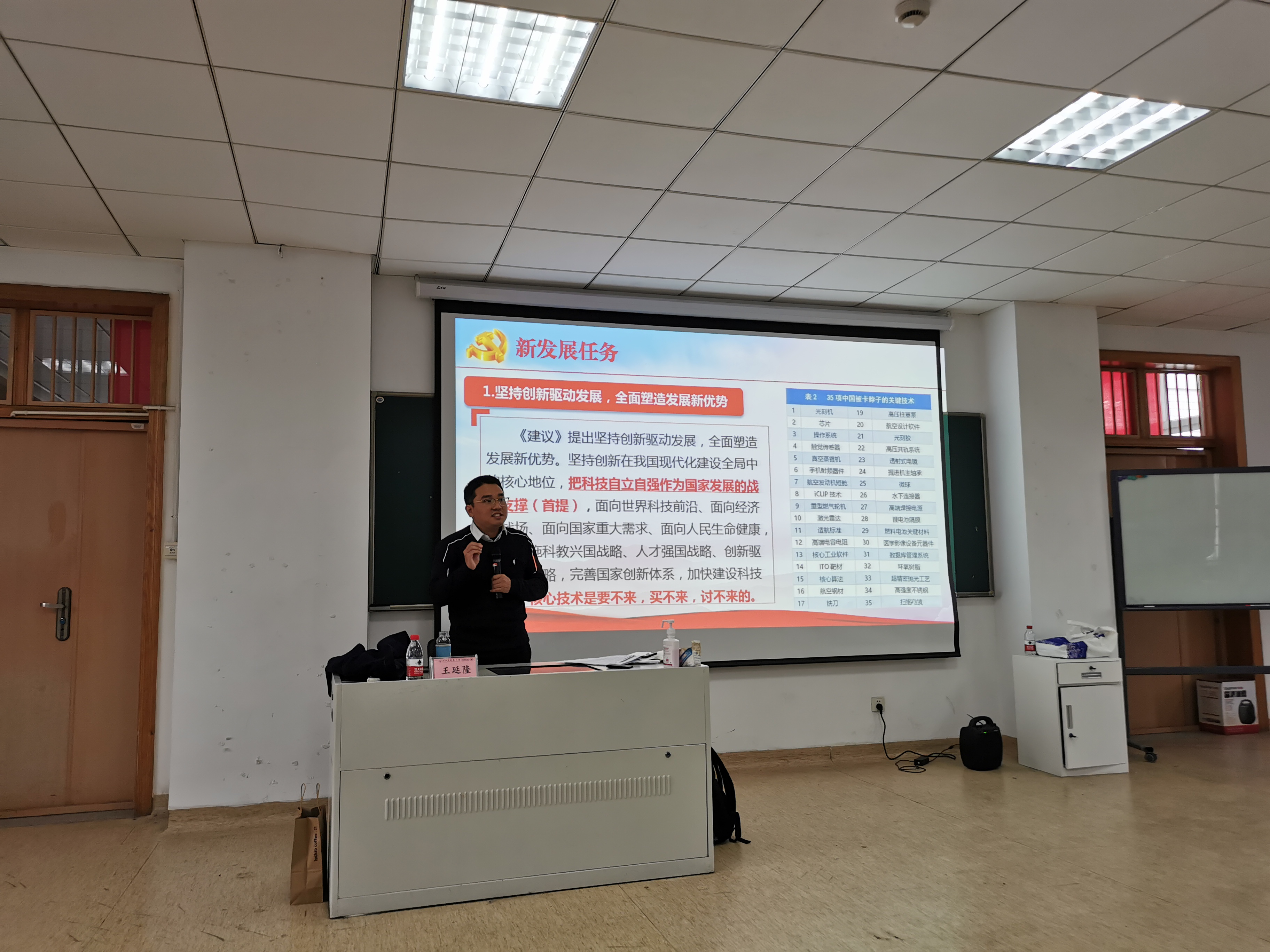 12月9日下午,万象城awcsport官网党总支分别在21号楼404会议室和518教室组织开展了党的十九届五中全会精神学习活动。根据学校党委的统一部署,罗伟明副校长给学院理论学习中心组成员进行了宣讲,马克思主义学院王延隆副教授给除理论学习中心组以外的学院教师和学生骨干代表进行了宣讲。本次专题学习活动由学院党总支书记方年根主持。