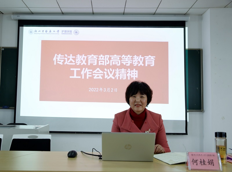 会上何桂娟院长传达教育部高等教育工作会议精神,指出全体教师应紧跟高等教育数字化浪潮,严把课堂质量关,扎实开展教学研究,主抓混合式课堂建设,大力开发慕课资源,推进智慧云课建设。随后周云仙副院长对学院全体教师积极申报各级各类项目表示肯定,强调学院将全力支持教师申报国自然项目,并对大家提出殷切希望。
