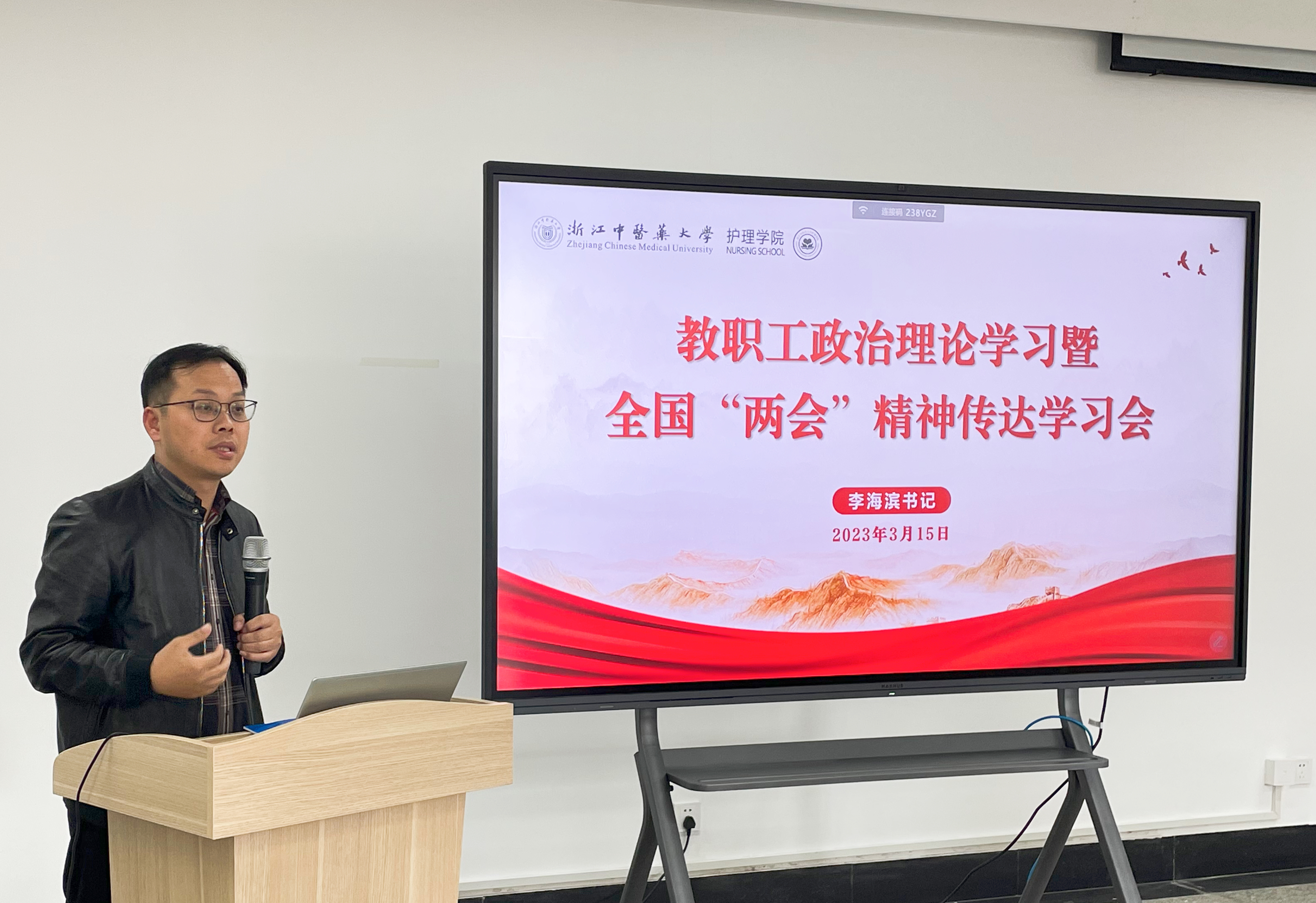 3月15日下午,万象城awcsport官网组织召开全院教职工政治理论学习会,专题学习全国“两会”精神,全院教职工参加会议,党委书记李海滨主持会议。