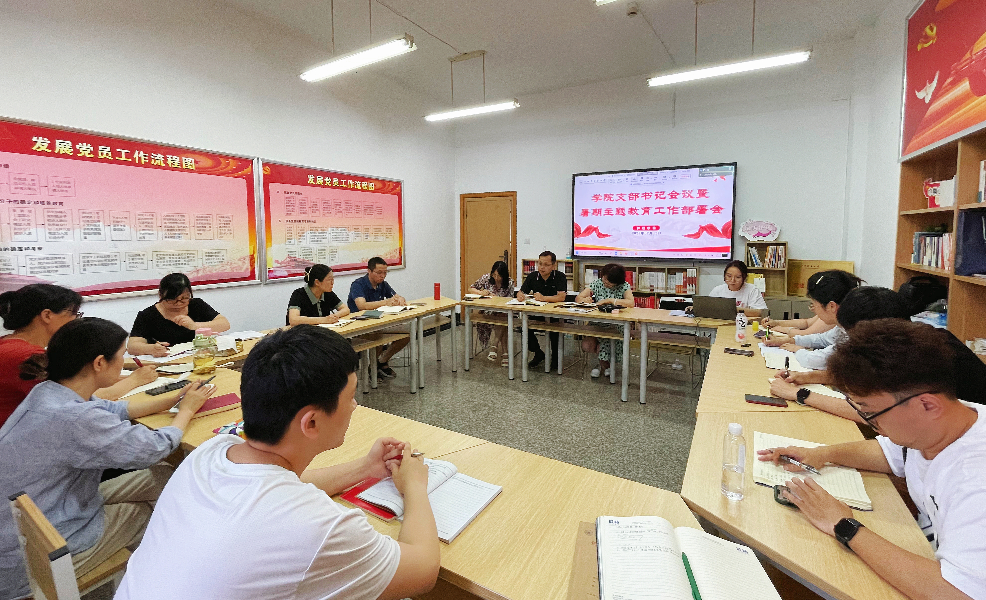 会议传达了学校关于做好暑期主题教育工作的通知要求,安排了全国高校学生党支部书记学习贯彻习近平新时代中国特色社会主义思想主题教育专题网络培训和2023年暑期教师研修相关事宜,并第一时间传达学习了省委十五届三次全会精神。