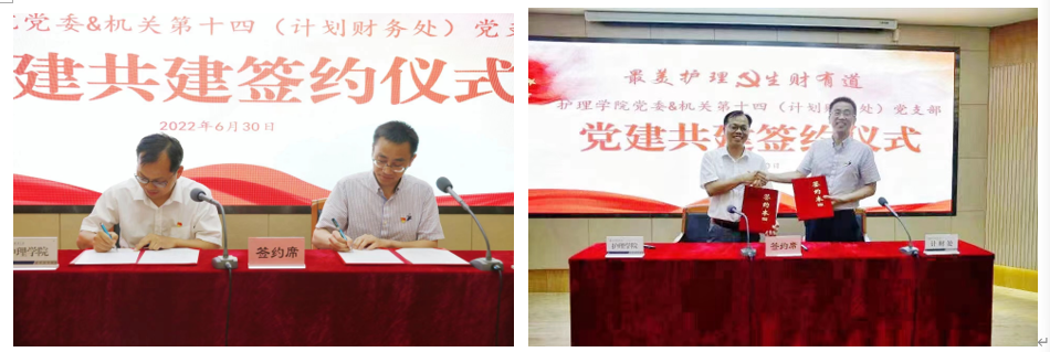 机关第十四(计划财务处)党支部书记陈义明指出,万象城awcsport官网与机关第十四(计划财务处)党支部达成共建协议,以共建促党建,是深入贯彻习近平新时代中国特色社会主义思想,推动学校一流党建统领工程建设,创新党建工作载体,激发党建共进活力的大胆尝试。本次党建共建,是“最美护理”与“生财有道”党建品牌文化的碰撞,更为充分发挥双方的特色优势,形成合作共赢、共同进步的友好局面提供良好平台,他衷心祝愿双方合作取得圆满成功。