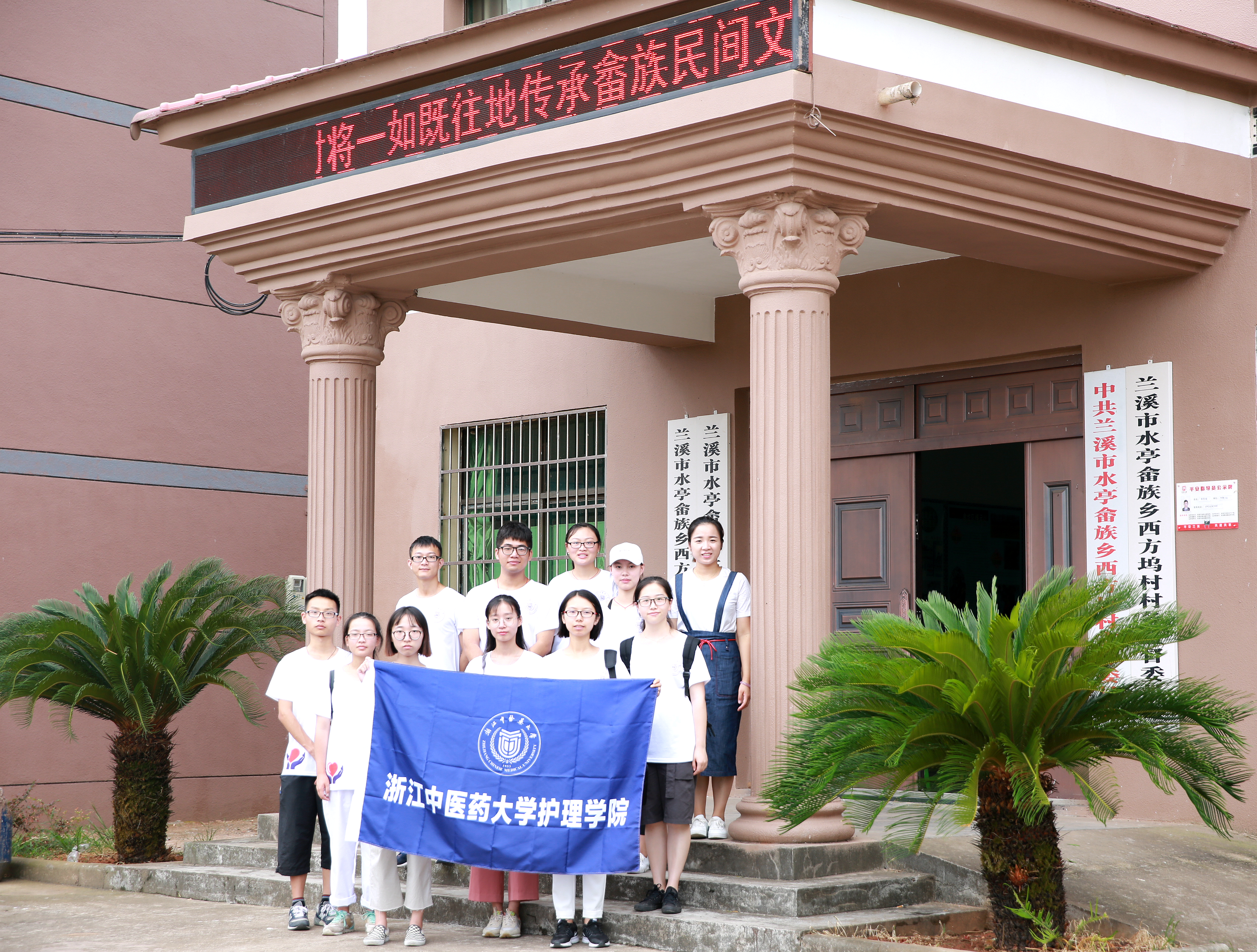 随后,实践团马不停蹄来到水亭乡西方坞文化礼堂。当地工作人员蓝老师带领队员们,结合展览板上畲族起源、民俗、节日的图文简介,以温和平缓的词调,在队员们面前展开一幅畲族文化之旅的宏伟画卷。活动最后,蓝老师还教会队员们表达“你好”、“欢迎你”的畲族手势,文化传承、思想交流、方显民族和睦。