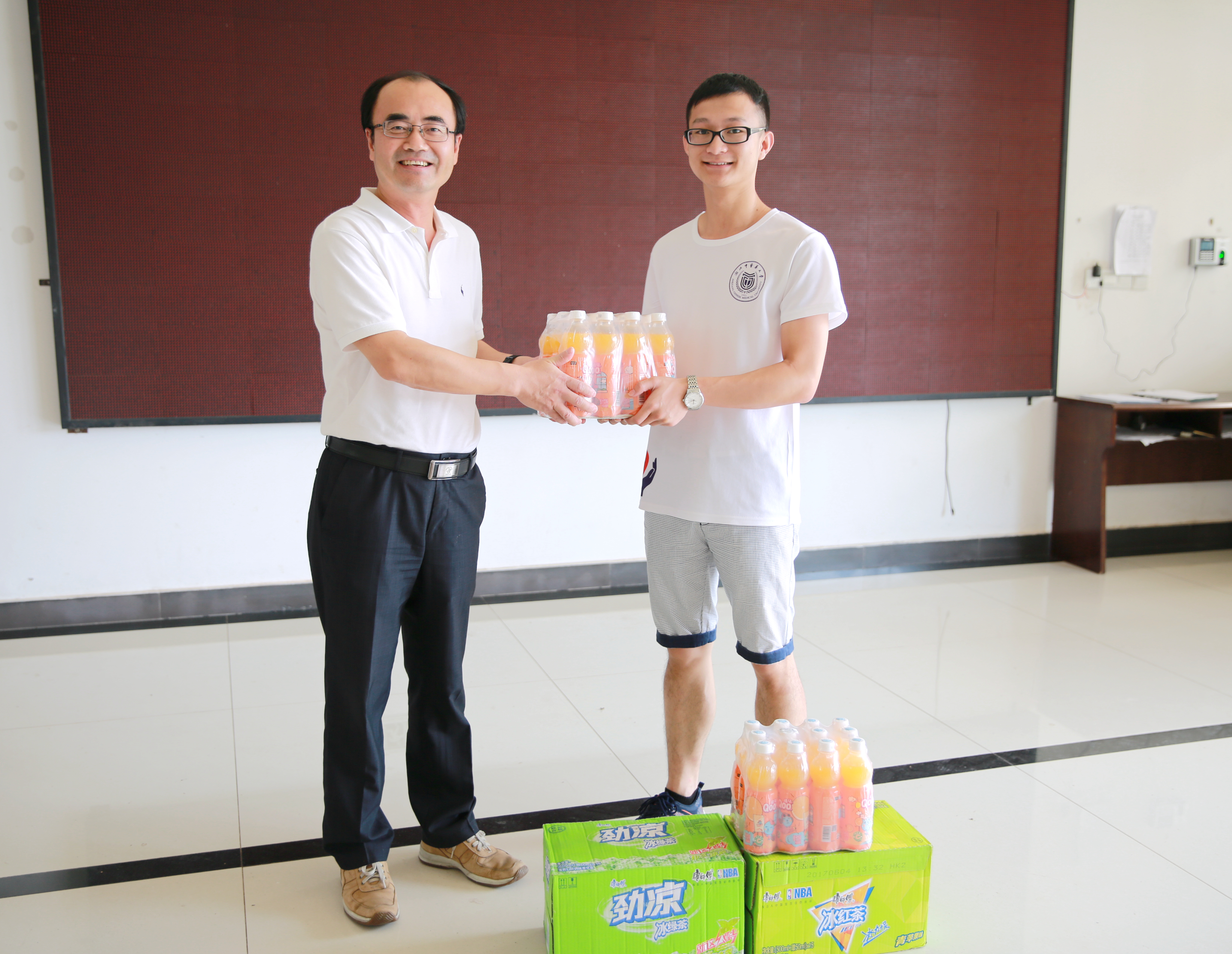 会议结束,校领导还送上了冰红茶等解暑饮品,表达对实践团的慰问。陈书记与实践团成员进行了面对面的亲切交流,队员们一一向陈书记表达自己在实践中的所感所悟。“众人拾柴火焰高”、“不忘初心,方得始终”,队员们静静地述说着各自的成长与洗礼,体验青春的活力与激情。