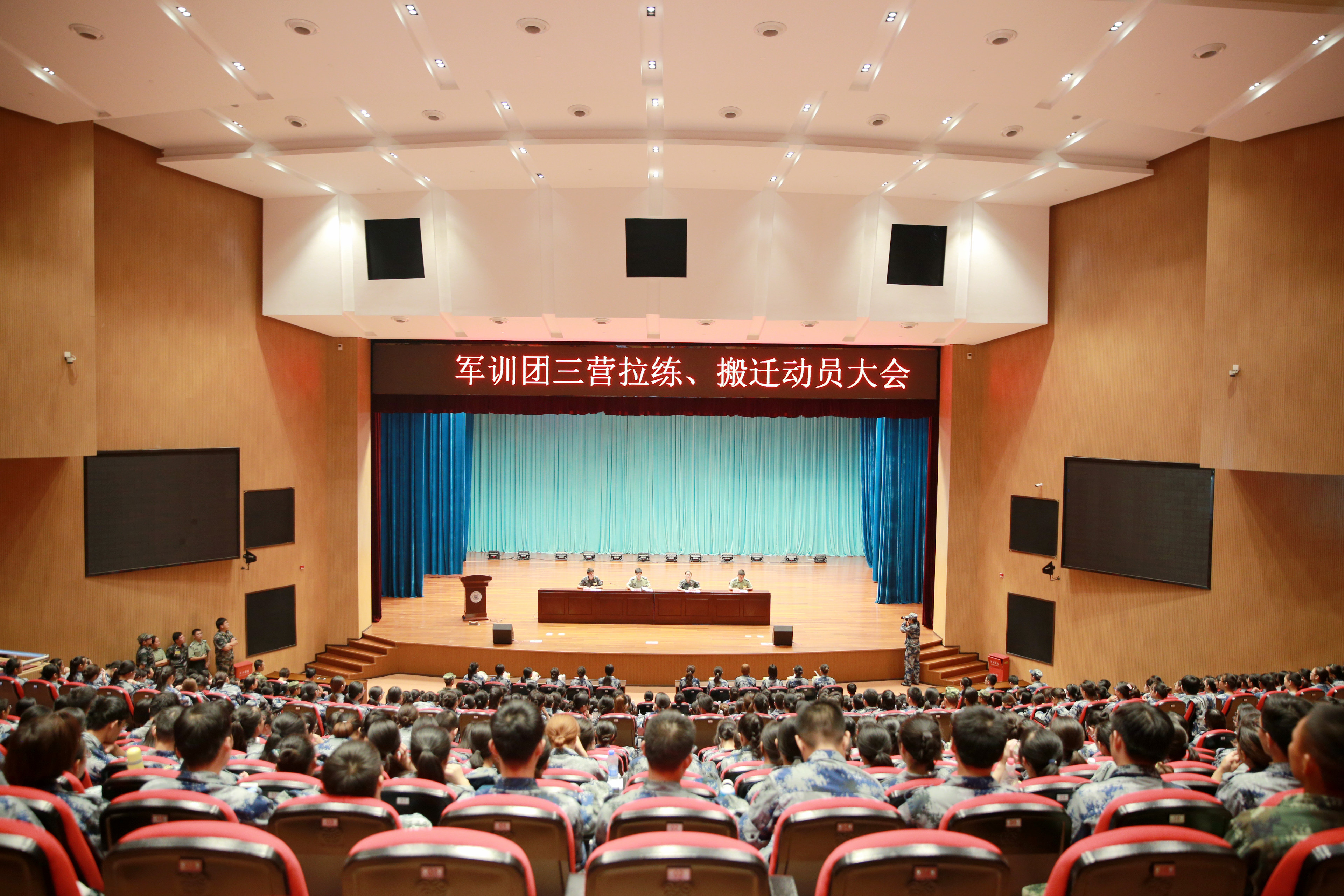 随后,军训团三营召开拉练、搬迁动员大会。伴随着全场大合唱《强军战歌》的高亢嘹亮声,动员大会拉开帷幕。三营教导员林觐民和各连指导员出席了此次动员会。大会由万象城awcsport官网团委副书记汤亚玲主持。