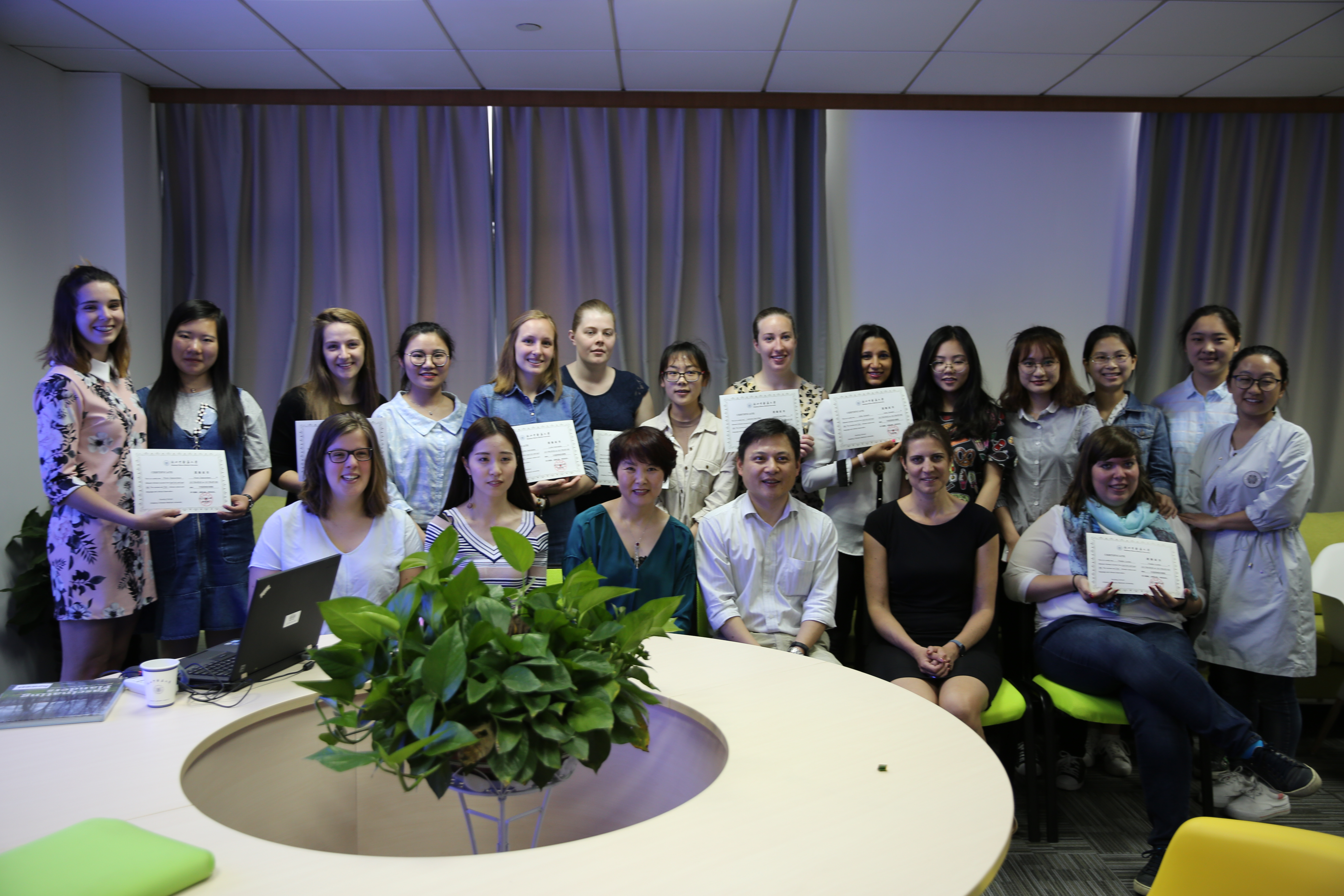 时光飞逝,为期三周的交流在4月19日画上了圆满的句号。我校万象城awcsport官网何桂娟院长与8位交流生进行了亲切交流并为她们颁发了结业证书,期待她们再次到中国来杭州学习甚至工作。比利时的老师和同学们也表示,回国后会开展分享这次难忘的中国之行,来年组织更多的同学到我校交流学习。
