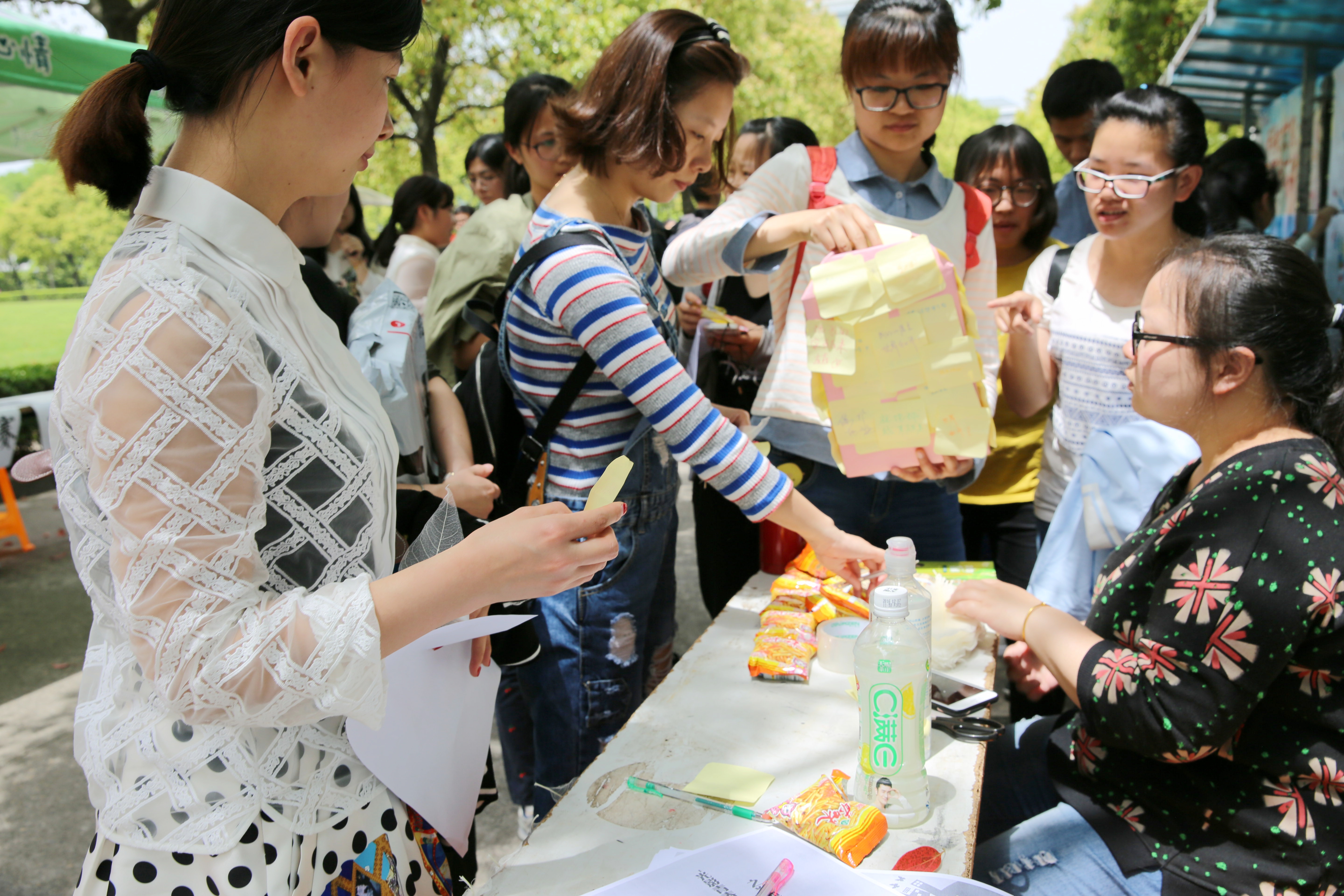 活动受到了来往学生的广泛参与。现场的工作人员积极引导参与者用颜料在校园蓝图填色海报上,为学校填上自己心目中那神圣的一笔色彩。平面设计队事先绘制好的海报上特留有两校区的特色景观,在参与者的热情与踊跃中,海报渐渐多了几分色彩与韵味,简单的画纸勾勒的朴素的校园逐渐生动鲜艳。手握一支笔,执笔绘蓝图,意象万千景,皆在画中行。悠悠落笔,层次浸染。