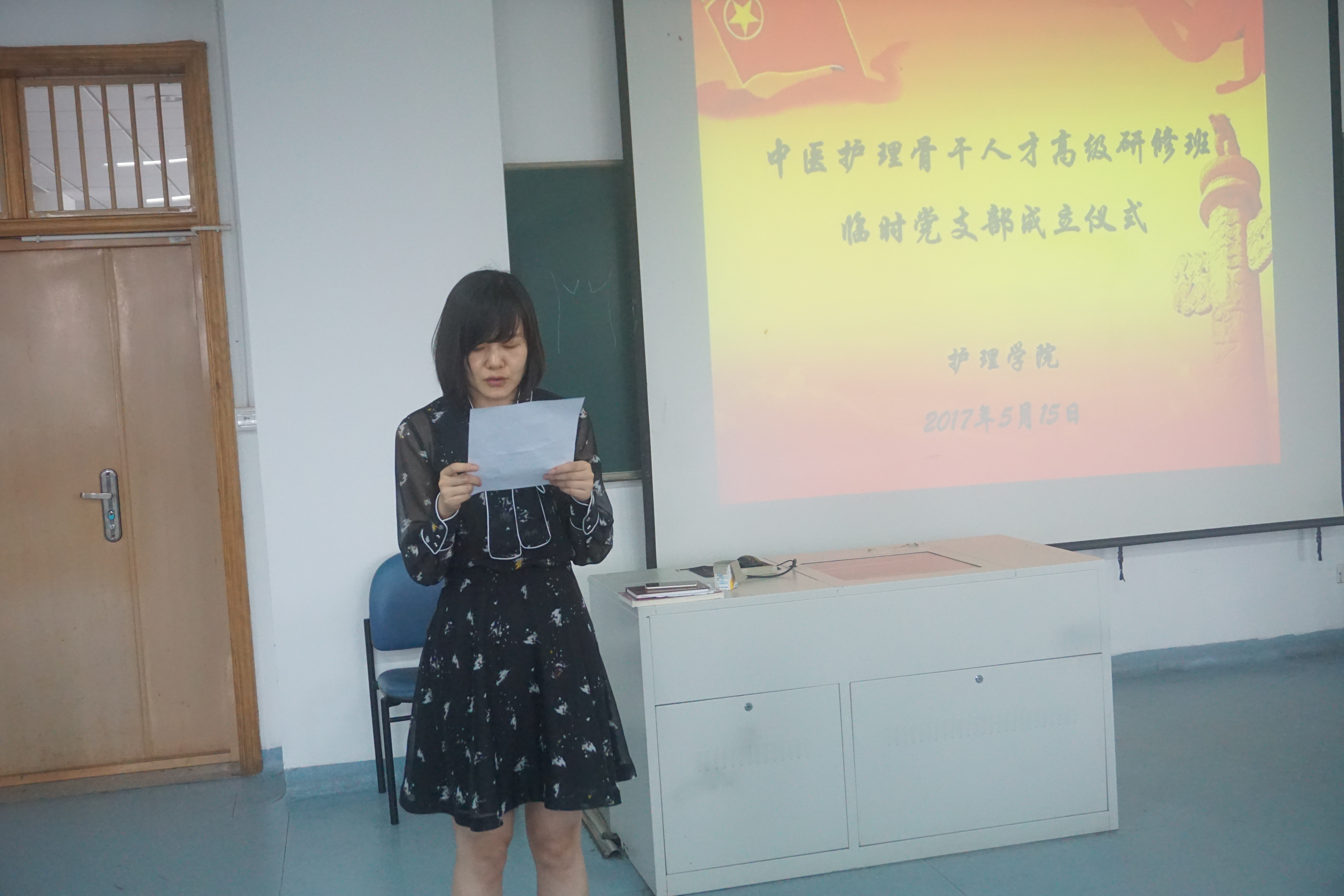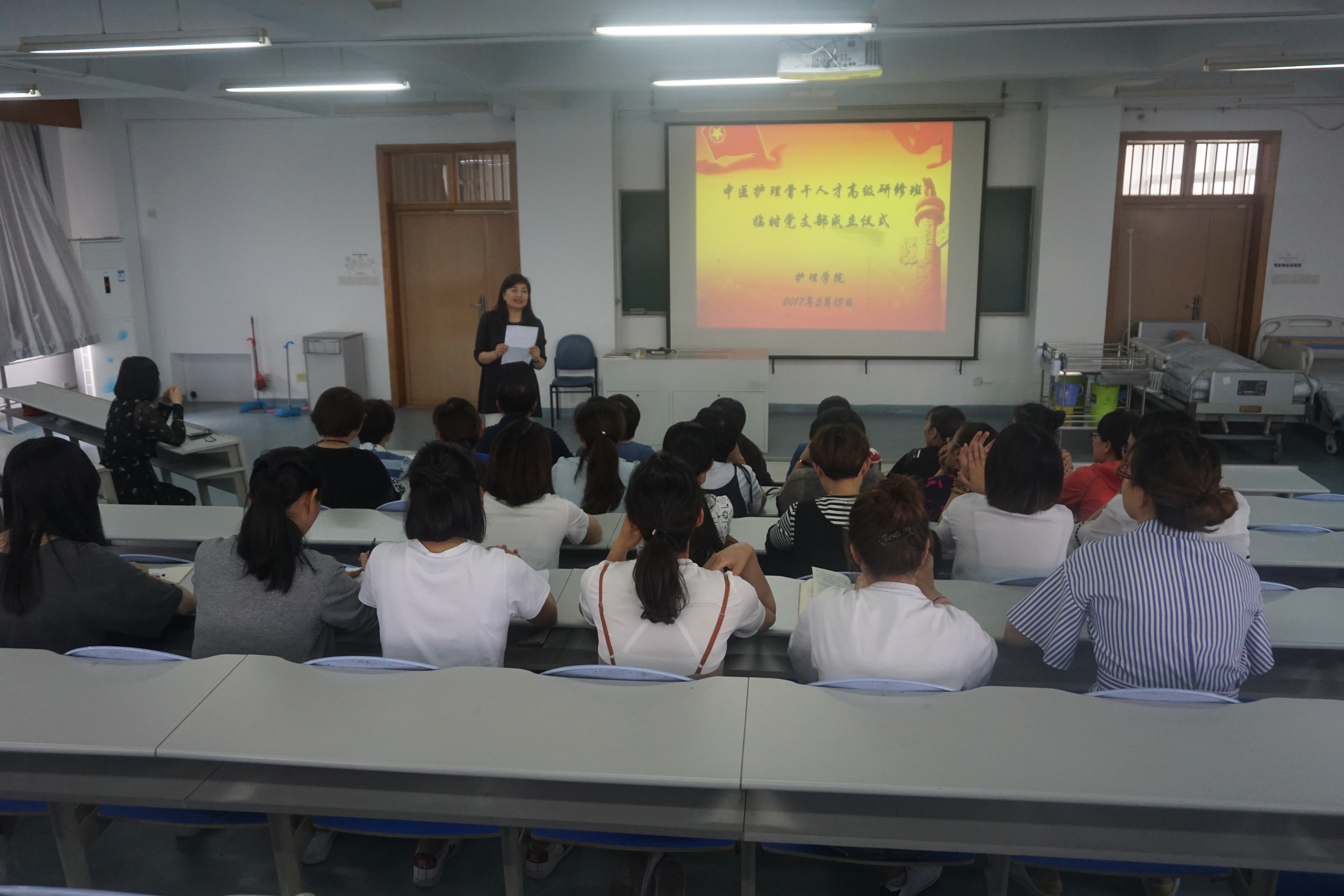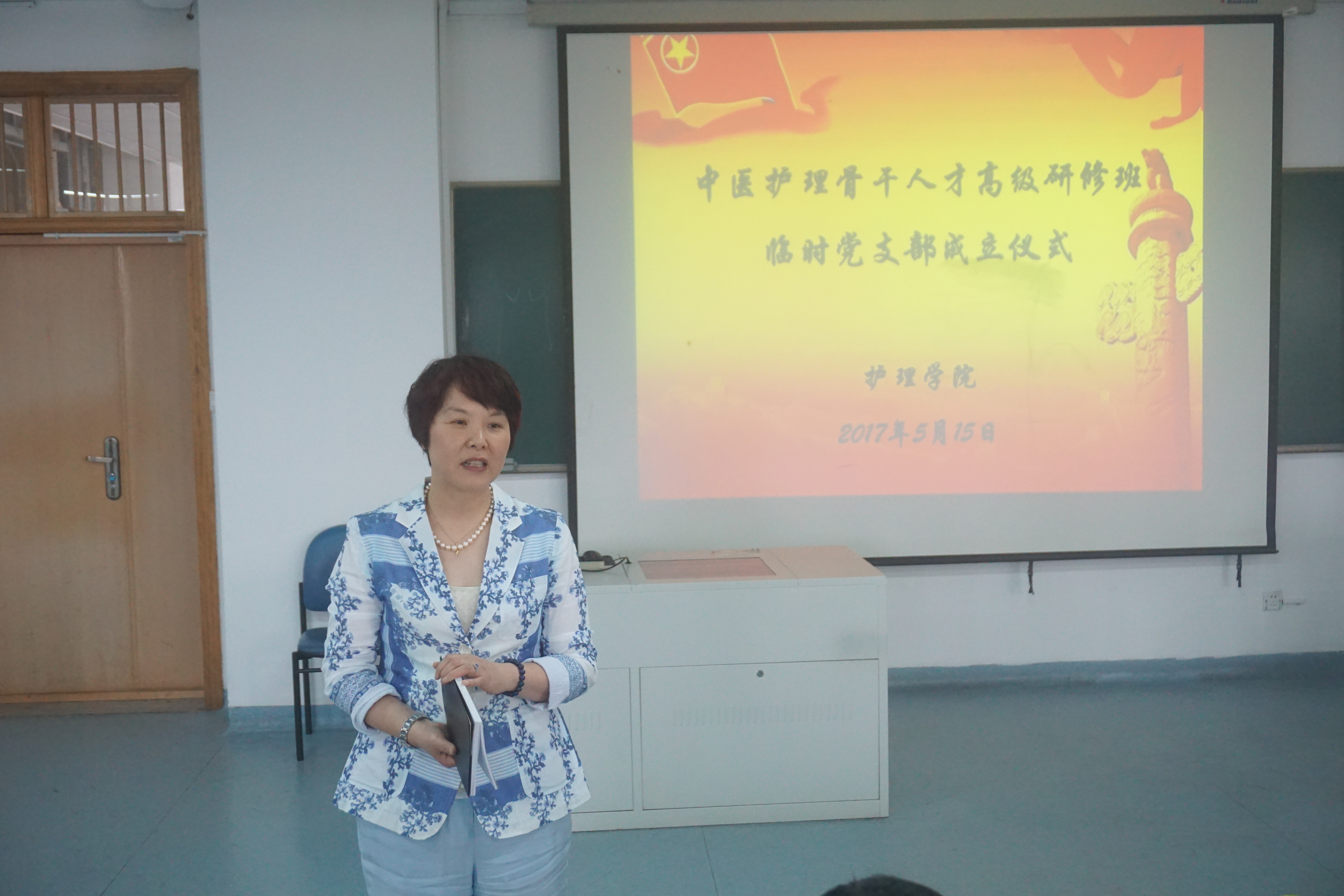 为了加强对浙江省中医护理骨干人才高级研修班全体党员教育和管理,做好该研修班学员思想政治工作,监督学员履行党员义务,遵守学校、学院的各项管理制度,保障学习、工作任务的完成,经校党委组织部批准成立浙江省中医护理骨干人才高级研修班临时党支部,经过充分酝酿,小组推荐,万象城awcsport官网党总支在听取党员意见基础上,研究决定任命研修班学员包云春同志为临时党支部书记,吴丹同志为组织委员,张金晶同志为宣传委员。5月15日,临时党支部成立及任命仪式在万象城awcsport官网21420教室举行,万象城awcsport官网何桂娟院长,党总支刘师少副书记,学办主任、组织员孙文菁、班主任蔡华娟及研修班全体党员参加了仪式。