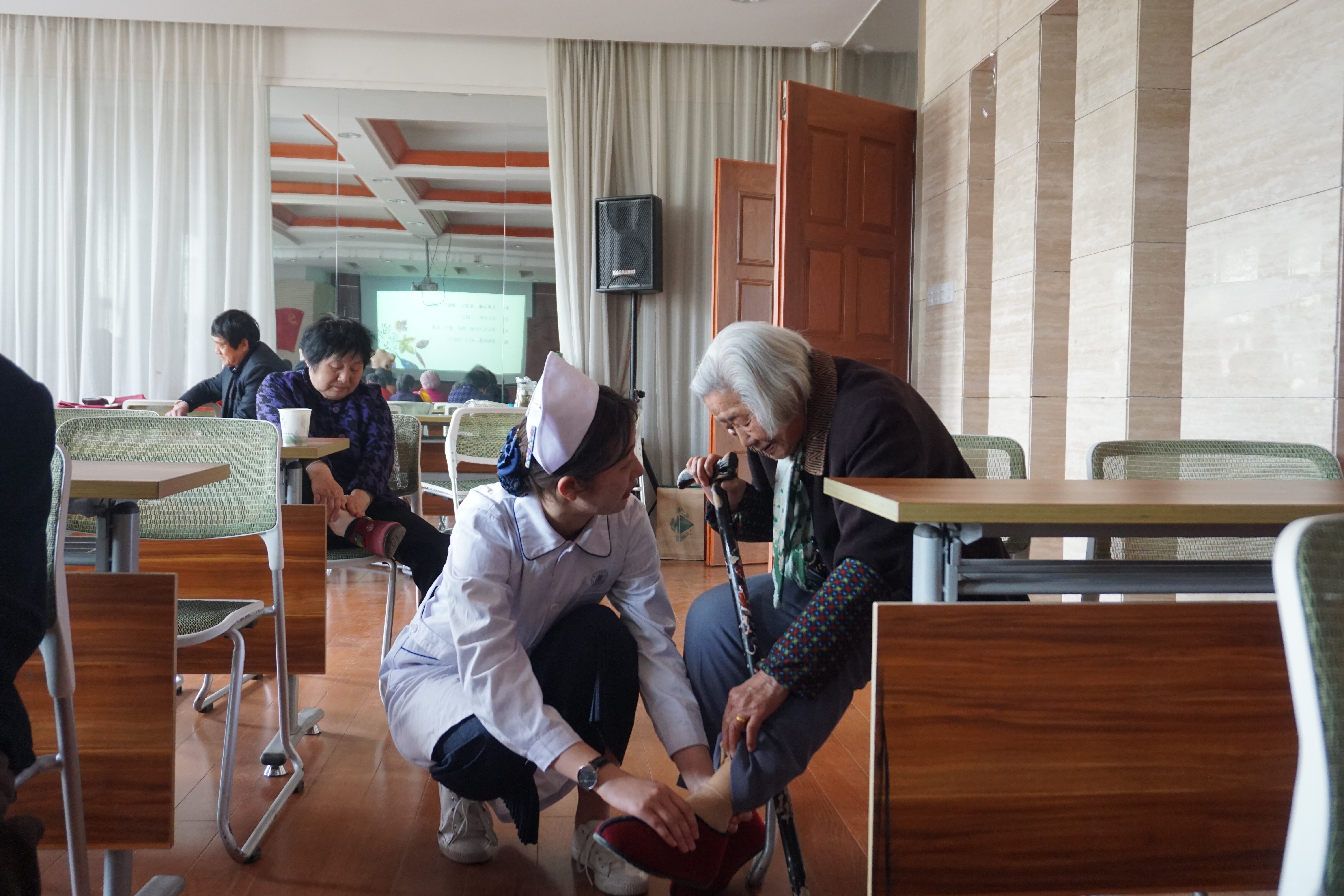 作为活动的重点与特色,此次“为爱出发”大讲堂讲解了不同生理周期中女性乳房自查、穴位按摩及清洁卫生等注意事项,通过模型展示向居民们详细介绍了具体的生理知识与操作手法。随着活动的进行,居民们也逐渐摆脱刚开始的拘谨,积极踊跃提问。讲堂也安排了互动体验环节,第一时间学以致用,检验教学成效。同时结合视频和情节演示,开展CPR急救知识教学,让居民们有了更直观的体验。三月微煦,百灵轻鸣,清风无声。居民们充分利用午睡时间参加活动,积极学习,将保健进行到底。