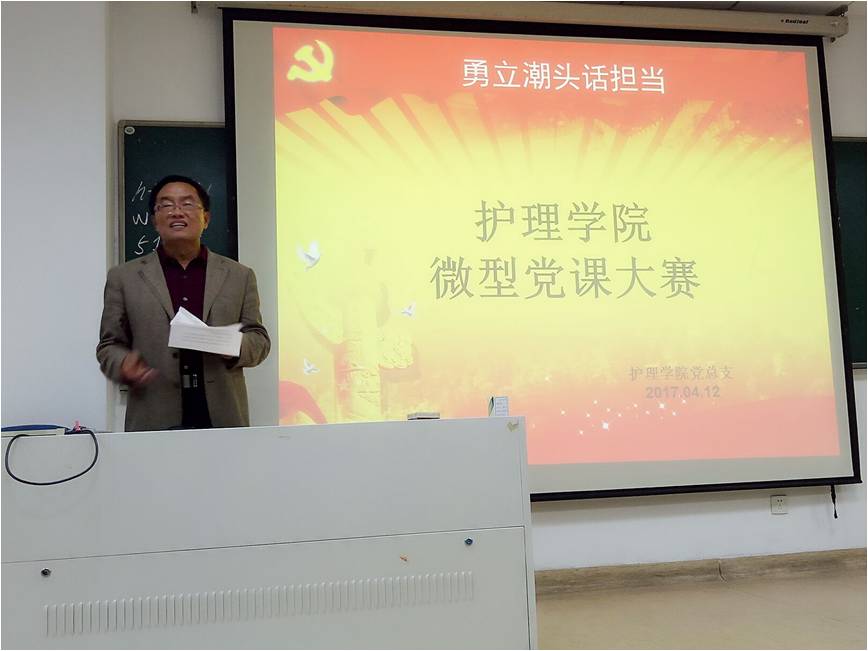 在点评环节,学院党总支副书记刘师少肯定了选手们的精彩表现,主要表现在:一是主题鲜明,弘扬了正能量;二是案例生动,接地气;刘书记要求将这些微党课课件通过学院新媒体“天使之路”让更多的学生党员、入党积极分子和更多的大学生看到,提升思想意识,唱响主旋律。刘书记对参赛选手提出了三点建议:一是微党课案例要进一步凝炼;二是PPT的设计要进一步完善;三是演讲者的激情要进一步迸发。