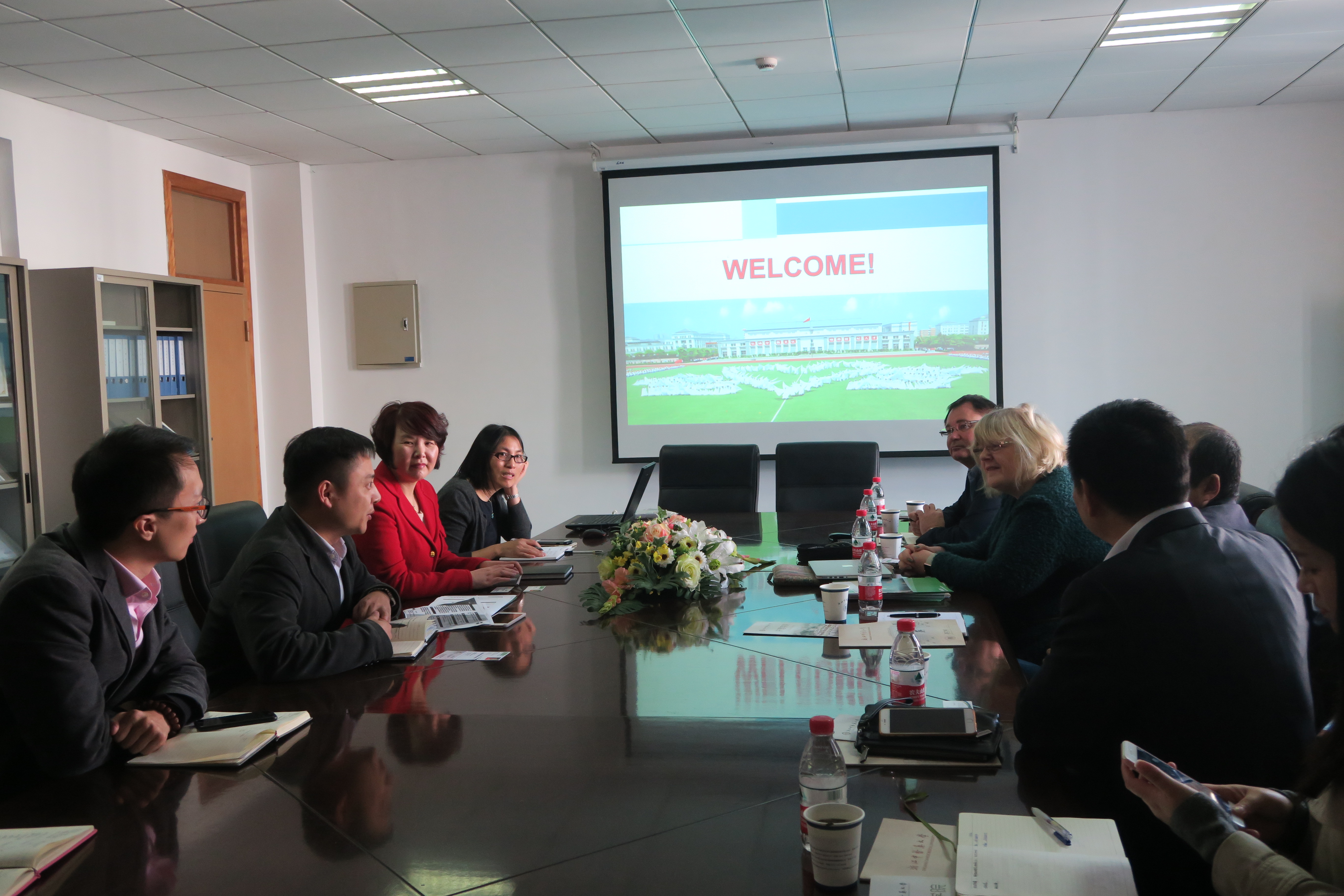 2016年11月3日上午,Annie Barr International Limited(安妮·巴尔健康集团),以下简称ABI,创始人及CEO Annie女士及中国医院协会疾病与健康管理委员会外事部主任杨舜一行7人来万象城awcsport官网就“陪医伴伴”国际医疗健康管理教育中心具体合作运作方式进行深层次洽谈,我校国际合作与交流处蒋剑锋副处长和学院全体党政领导班子成员参加了会谈。会上何桂娟院长介绍了学院教学、科研等学院总体情况;蒋剑锋副处长介绍了学校情况及我校与英国对外交流情况;Annie女士介绍了ABI的创办历史和理念及在各国开展培训的模式。