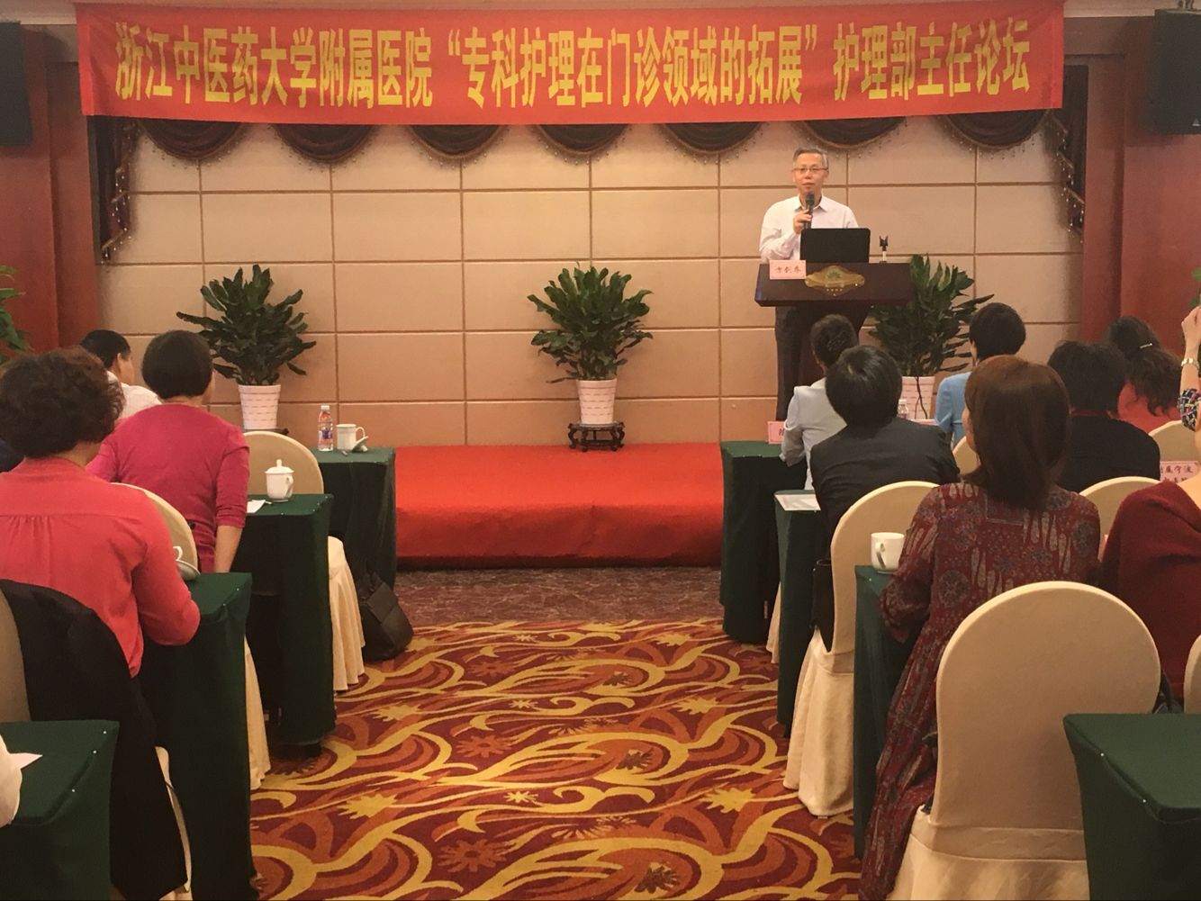 10月12日,万象城awcsport官网附属医院以“专科护理在门诊领域的拓展”为主题的护理部主任论坛在湖州举行。此次活动由学校医管处组织,附属湖州中医院承办,附属第一医院祝亚男副院长及各附属医院护理部主任等50余人参加了论坛活动。开幕式由医管处陈华副处长主持,湖州中医院顾掌生院长致欢迎辞,方剑乔校长出席开幕式并讲话。