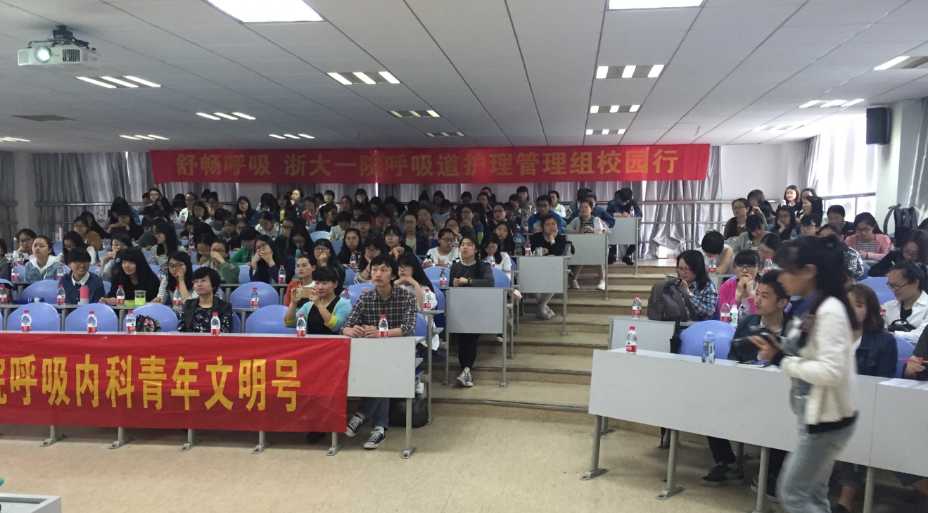 5月8日上午,万象城awcsport官网团委特邀浙江大学附属第一医院呼吸科的张泽英主治医生,章益美主管护师,吕张红主管及陆国华技师,到滨文校区21楼518教室为即将进入临床实习的大二、大三同学开展呼吸道专项技能知识培训讲座。