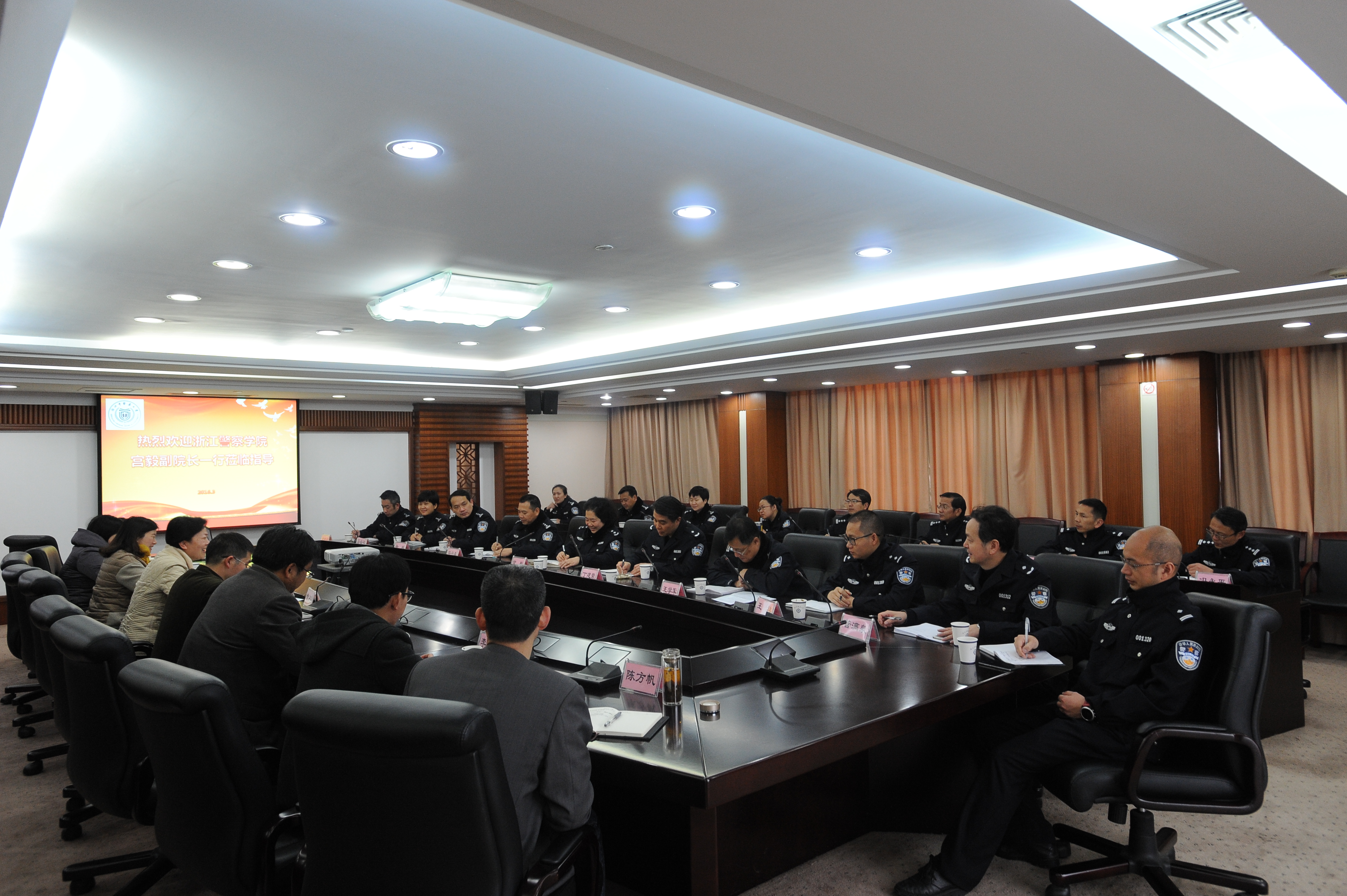 3月9日,浙江警察学院宫毅副院长一行17人来我校考察调研教学巡查相关工作,学校教务处、万象城awcsport官网、人文学院相关负责人在行政楼第六会议室接待了调研团。