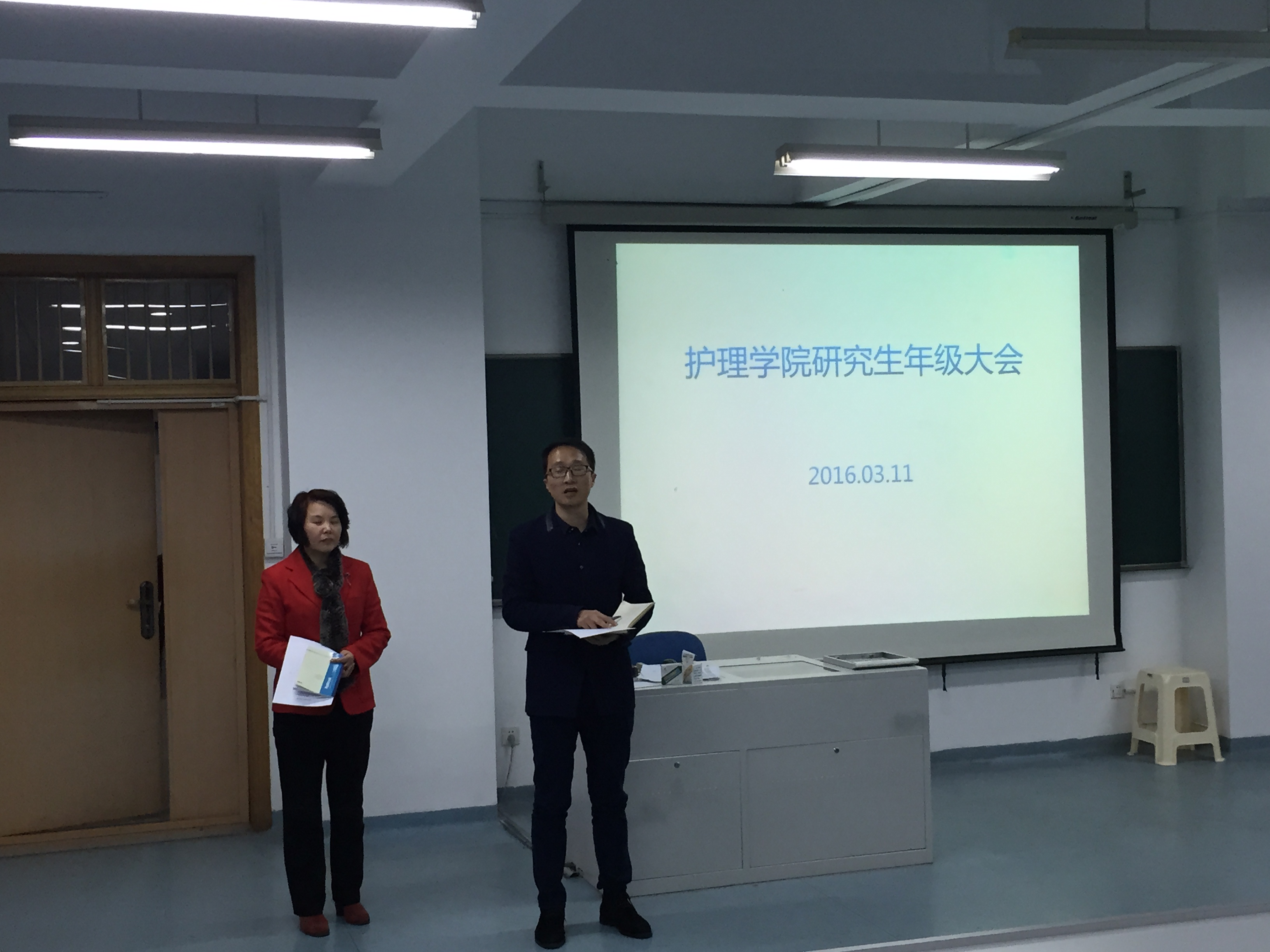 2016年3月11日,万象城awcsport官网召开了研究生年级大会,学院领导、研究生教学秘书、研究生辅导员,以及全体研究生参加了此次会议。会议由万象城awcsport官网董凯峰副书记主持,何桂娟院长做重要讲话。何院长对新学期的研究生教育工作做出了重要指示,重点强调了几方面能力的提升:科学研究能力、英语运用能力、论文撰写能力、临床综合能力等,同时也指出了保持与导师良好沟通的重要性。何院长也对各年级研究生提出了学习的要求:高年级研究生的论文撰写、中年级研究生的中期考核、低年级研究生的开题答辩等,指出保持严谨踏实作风、认真钻研态度的重要性。此外,何院长还鼓励研究生积极参与对外交流,提升国际交流能力、开阔眼界、增长见识,学院也将给予支持,为研究生创造更好的学习和交流平台,促进综合能力的提升。