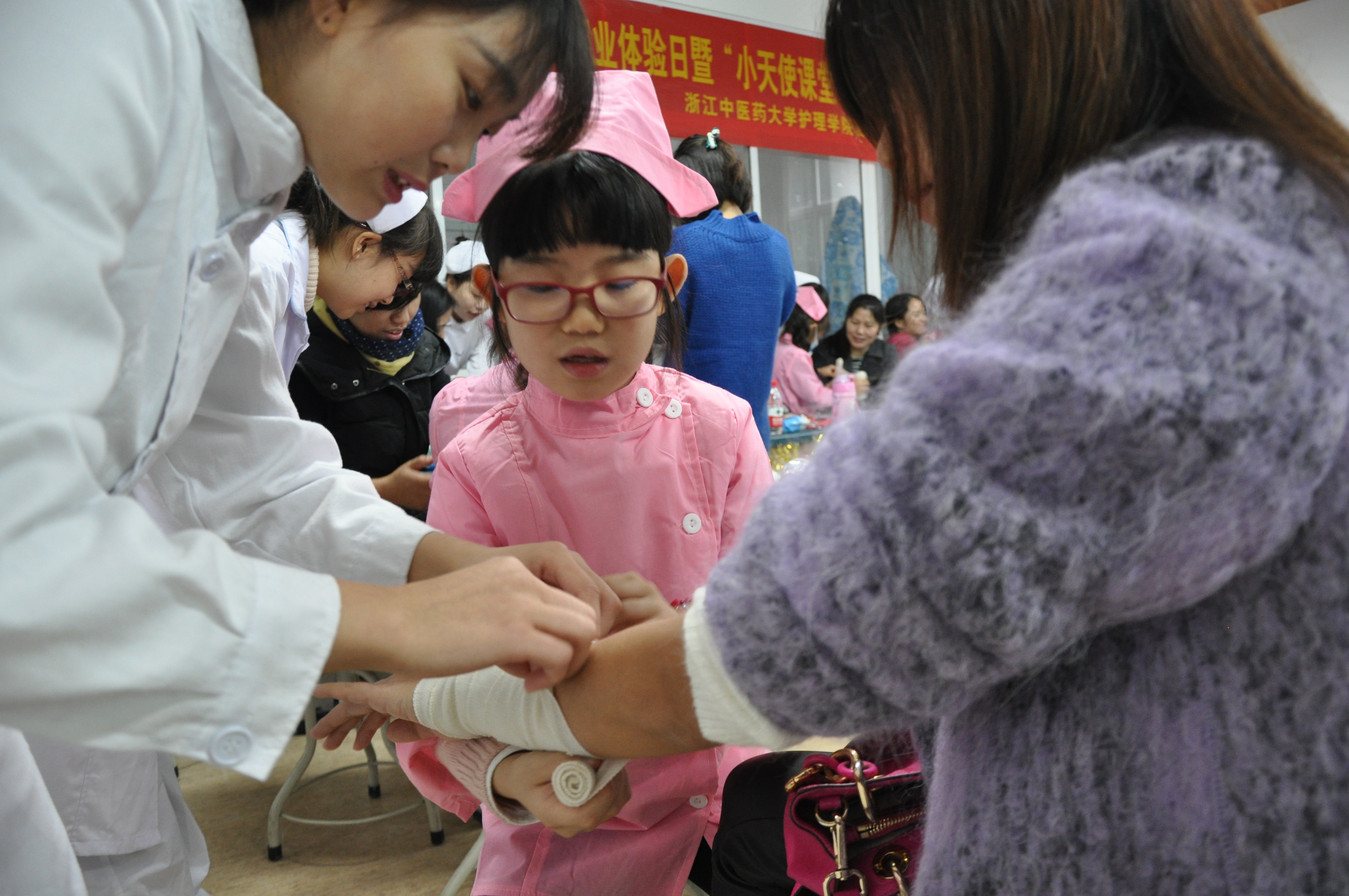 深秋之时,微雨霏霏。11月21日上午,万象城awcsport官网在21208教室再次开启护士职业体验日之“小天使课堂”活动。活动以“天使之心,呵护淳淳童心”为主题,旨在通过寓教于乐的方式,开展面向小学生的护士职业体验活动,让小朋友们在游戏和操作的过程中,了解医疗常识,感受中医护理。本次活动面向杭州市滨文小学二年级学生及家长开展。
