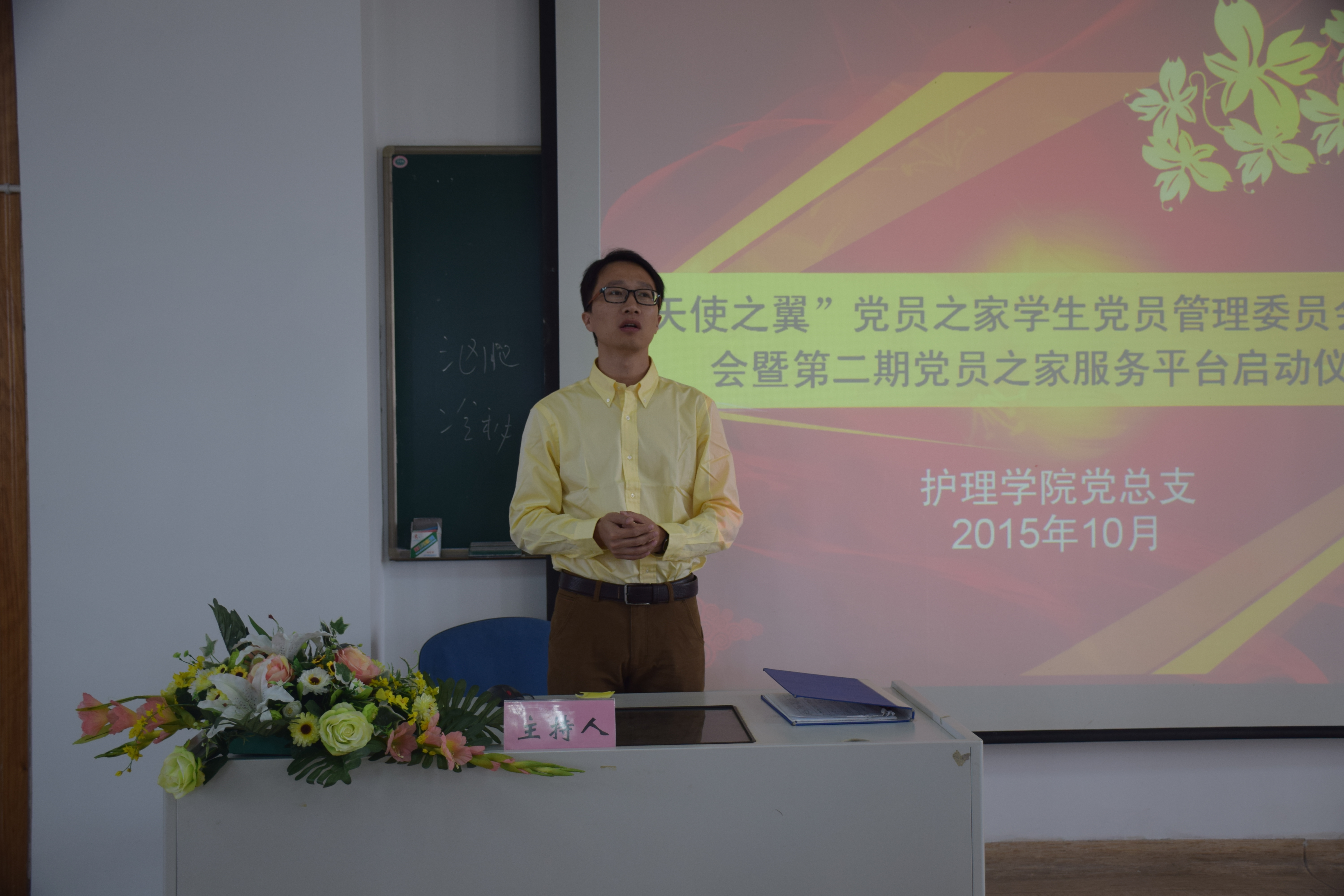 10月21日中午12:30,万象城awcsport官网党总支于21号楼518教室举行了“天使之翼”党员之家学生党员管理委员会换届大会暨第二期党员之家服务平台启动仪式。万象城awcsport官网党总支副书记董凯峰、万象城awcsport官网党总支组织员兼学办主任孙文菁、万象城awcsport官网团委副书记兼第三党支部书记汤亚玲、第一党支部书记李赞成、第四党支部书记楼数慧出席本次会议,会议由万象城awcsport官网党员之家负责人杜磊主持。学院全体在校学生党员及入党积极分子参加了本次大会。