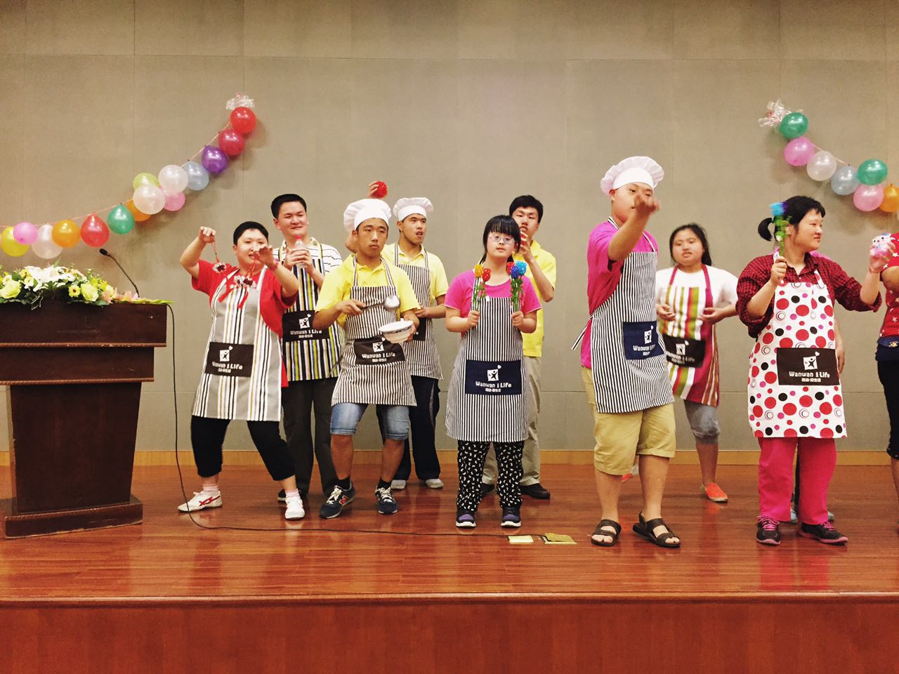 当晚的答谢会,由弯湾托管中心学员带来的一场创意时装秀拉开了序幕。首先,万象城awcsport官网党总支副书记(主持工作)刘师少发表讲话,刘书记代表万象城awcsport官网全体师生对弯湾托管中心师生们的到来表示热烈欢迎,充分肯定万象城awcsport官网志愿者协会以及冬青社成员对弯湾托管中心所做的爱心志愿服务。接着,弯湾托管中心的创始人徐琴老师给大家分享弯湾的由来和发展,在徐琴老师温情的分享中,现场观众不断被弯湾学员自强、积极、乐观的精神感动。在弯湾学员表演的节目《我的中国心》和万象城awcsport官网师生表演的节目《感恩的心》之后,答谢会的气氛达到高潮,全体观众起立竖起大拇指为弯湾的师生点赞加油。尽管弯湾的学员们动作不是很协调,但是他们的每一个动作都很认真,用他们的方式表达感谢。参加答谢会的张同学眼里饱含泪水,说:“以前自己经常抱怨生活,听了弯湾学员的事情后,觉得自己真的很幸福。以后一定会去弯湾托管中心做志愿者去帮助他们。”