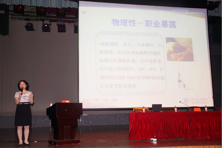 贾老师从标准预防特点与内容、职业暴露分类与分析、职业防护规范与护理、艾滋病职业防护教育等四个方面讲述了如何做好护理职业自我防护。刘书记就护士职业道德进行了专题讲座,对广大同学就护士职业行为规范和护士应具备的职业素质进行了专题教育。