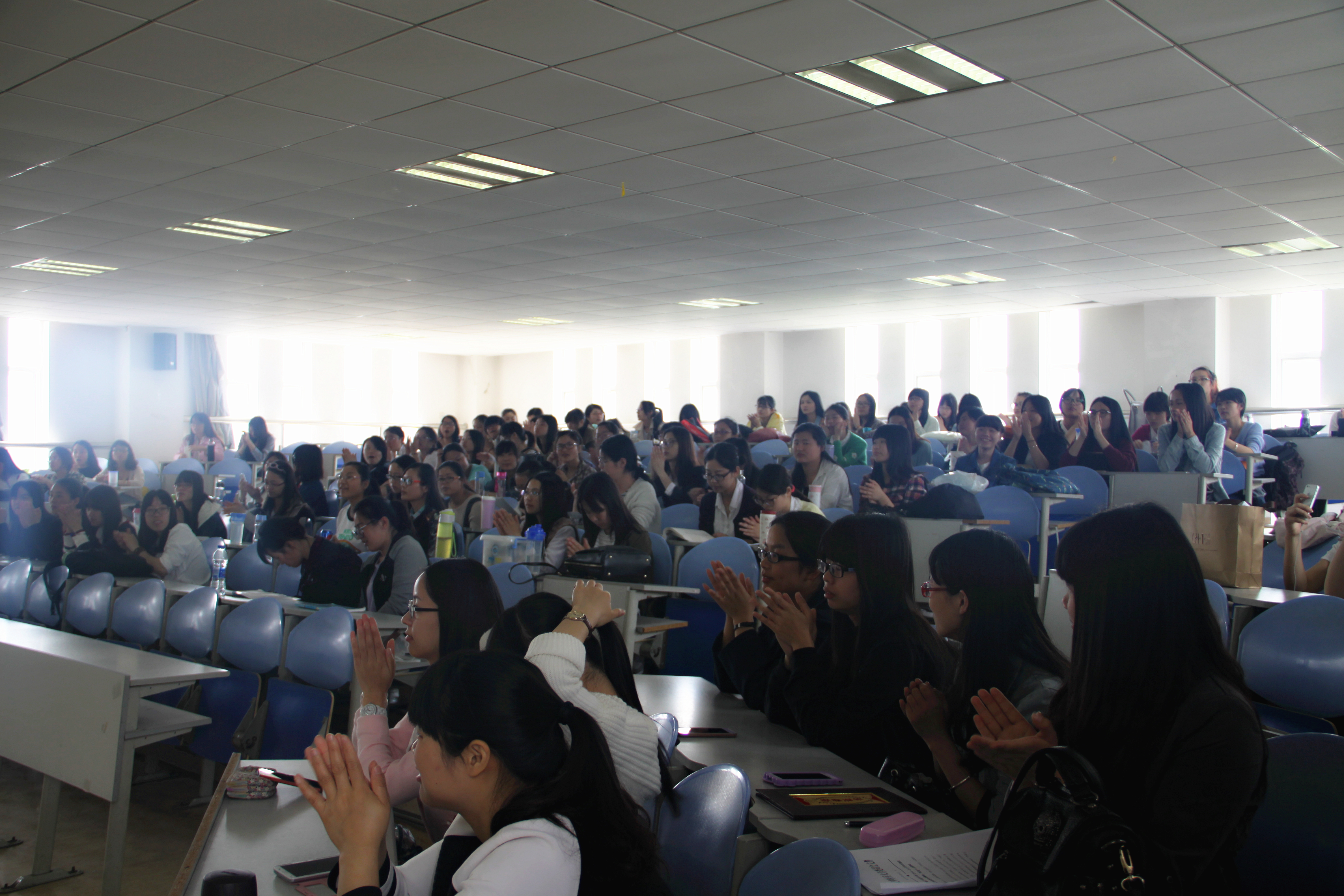 图二:2012级学生为学院取得的成绩热烈鼓掌