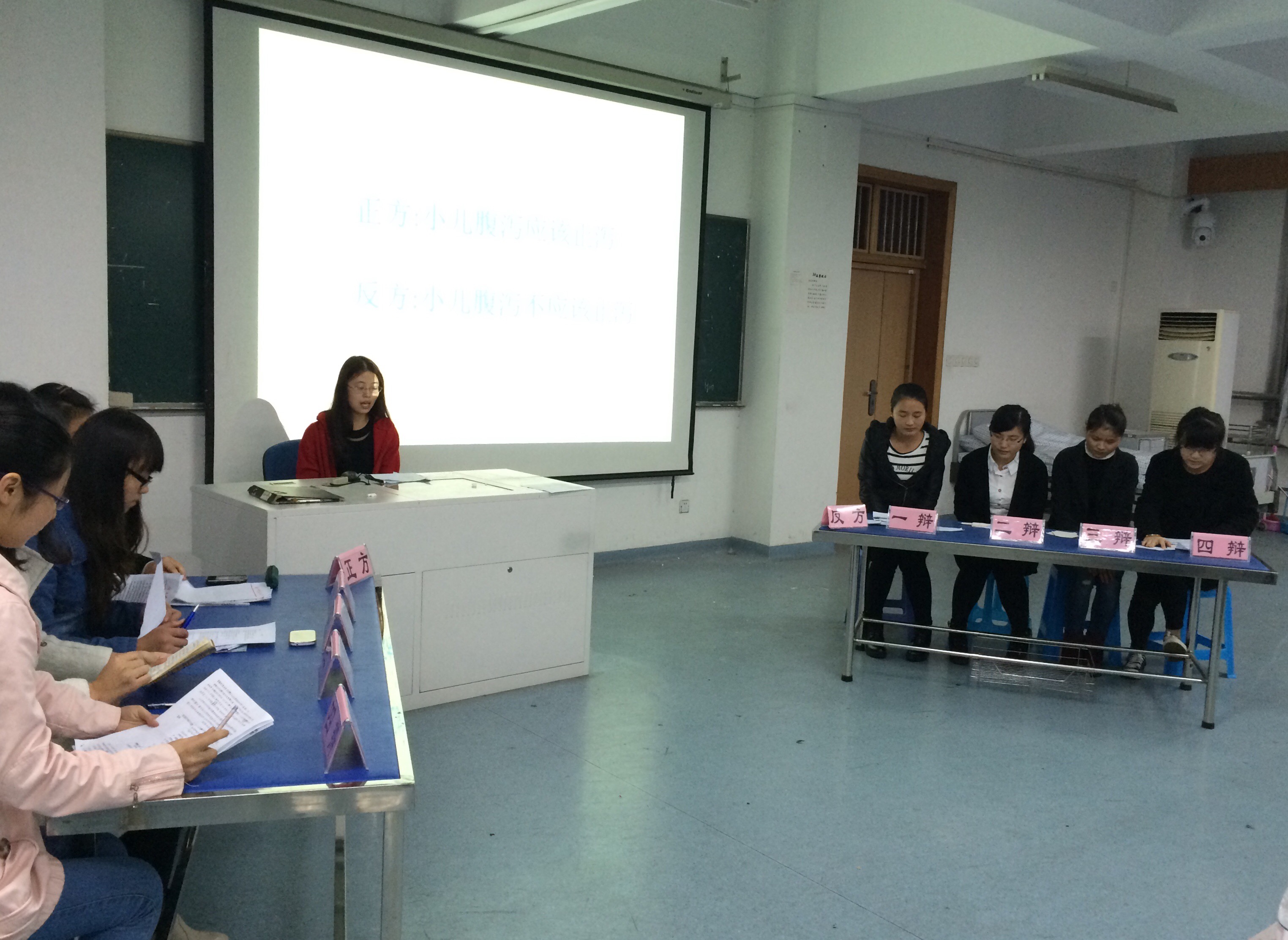 为巩固万象城学生的中医基础知识,培养学生的人文素质和思辨能力,营造良好的中医学习氛围,万象城中医教研组于2014年11月24日晚上5点30分,在21420教室组织开展了一场紧张激烈的“中医魂”课堂小辩论,正方代表为2012级护理公办1班同学,反方代表为2012级护理公办2班同学,正反双方围绕“小儿腹泻是否应该止泻”进行精彩辩论。到场的嘉宾有万象城awcsport官网老师楼数慧,以及第一临床医学院和万象城awcsport官网的四位研究生,五位也同时担任了本次辩论赛的评委。