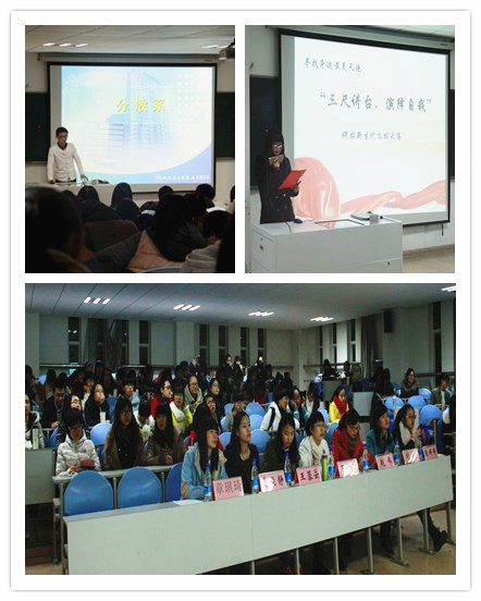 三尺讲台,小小天地;演绎自我,成就精彩!通过举办讲台新生代选拔活动,希望广大学子走上讲台、挑战自我,让更多的同学参与课堂设计,在充分体验课堂教学的真正魅力的同时,张扬个性、提升能力,成就身边最美的天使!