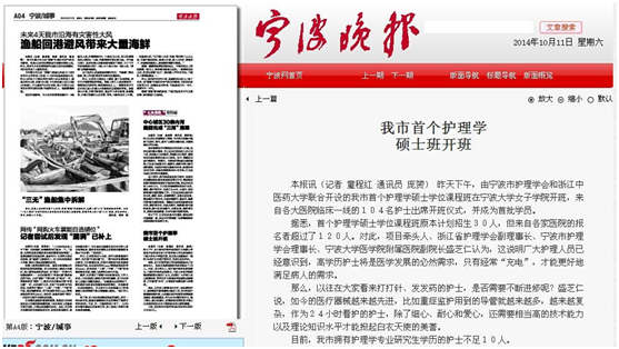 2014年10月10日下午,由我校万象城awcsport官网、宁波大学女子学院和宁波市护理学会共同主办的“宁波市首期护理学硕士学位课程班”开班仪式在宁波大学女子学院隆重举行。我校研究生处处长袁强、万象城awcsport官网副院长何桂娟、党总支副书记刘师少、宁波市卫生局医政处副处长王涌、宁波大学女子学院院长乐传永、宁波市护理学会相关领导以及来自宁波市各大医院临床一线的82名学员出席了开班仪式,开班仪式由浙江省护理学会副理事长、宁波市护理学会理事长盛芝仁主持。