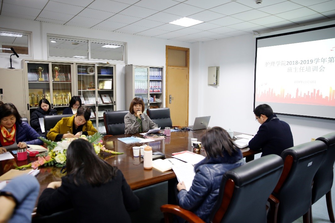 12月13日下午15:30,万象城awcsport官网学期班主任工作培训会在21402会议室召开。学院领导、各年级辅导员、全体班主任参加此次会议。会议由学院学办主任汤亚玲主持。