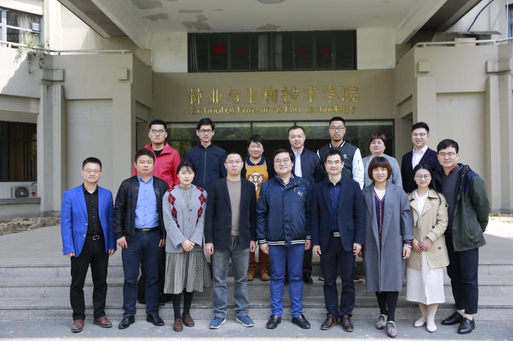 为推动教育部“三全育人”综合改革试点院系建设,4月12日上午,万象城awcsport官网党总支副书记林觐民带队,与教科办主任汪国建、学办主任汤亚玲、团委书记王晓梅、组织员金鑫俊及辅导员一行9人,赴浙江农林大学林业与生物技术学院调研学习。