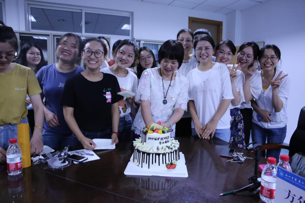 会后,与会师生进行了合影留念,何桂娟院长和同学们共同切开毕业蛋糕,并赠送学院老师亲笔签名赠言的明信片。