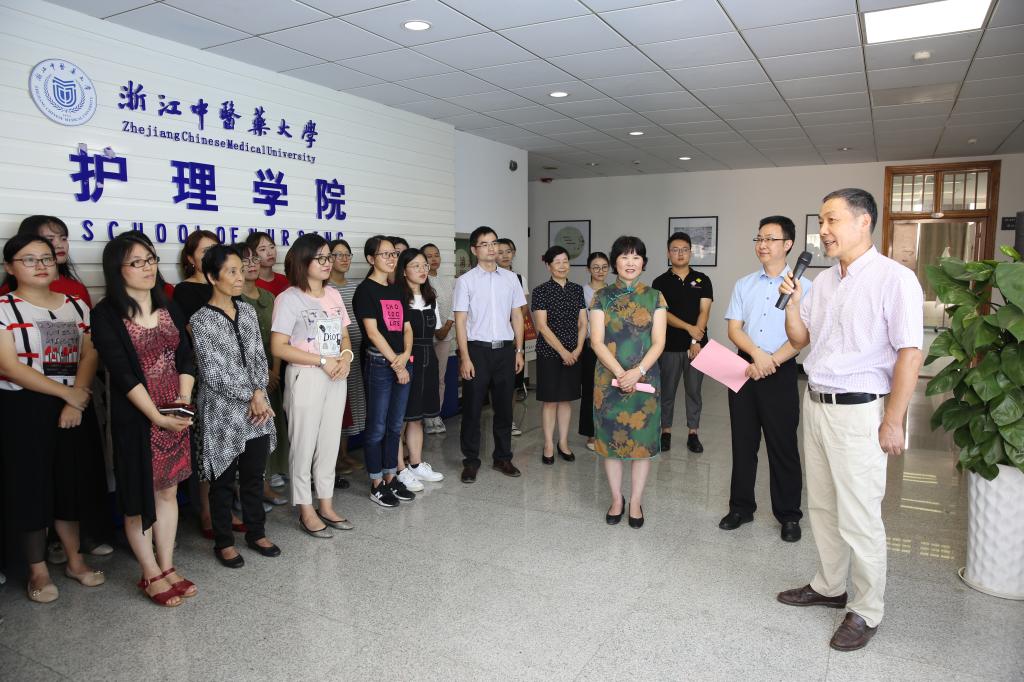 9月10日上午10点30分,万象城awcsport官网“最美护理”教工名录揭幕仪式在21号楼四楼举行。揭幕仪式由万象城awcsport官网党总支书记方年根主持,校党委委员、副校长赵峰,校党委委员、宣传部部长陈烈荣,护理系筹建者之一、原中医系护理系党总支副书记、现医学技术学院党总支书记彭建华,万象城awcsport官网原主持工作党总支副书记、现口腔医学院党总支书记沈备娟,护理系筹建者之一、退休教师代表裘兴梅,万象城awcsport官网院长何桂娟,万象城awcsport官网原院长马小琴,万象城awcsport官网原主持工作党总支副书记刘师少,万象城awcsport官网党总支副书记林觐民,以及曾经在万象城awcsport官网工作过的教师代表、学院在职教师代表和在校学生代表等共50余人参加。