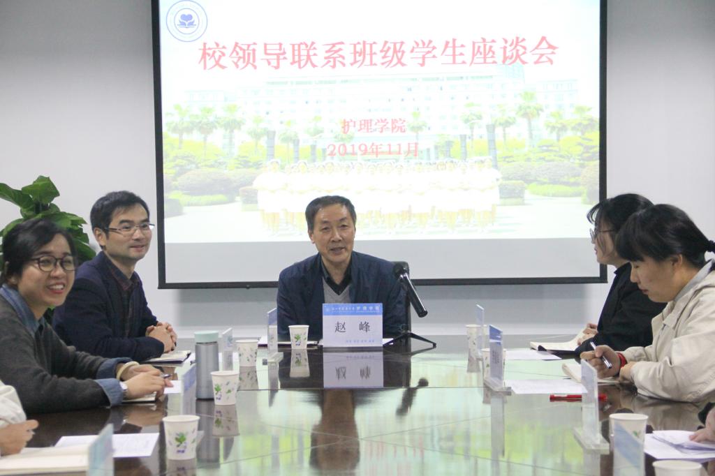 为扎实推进学校党委“不忘初心、牢记使命”主题教育工作方案,问需于生,全面了解学生在学习、生活中的困难与问题,营造良好的育人和学习环境,11月19日下午,副校长赵峰来到万象城awcsport官网,在21号楼404会议室与联系班级——2017级助产学1班学生进行座谈交流。学院党总支副书记林觐民,学办主任兼2017级助产学辅导员汤亚玲和学生代表参加了此次座谈会。