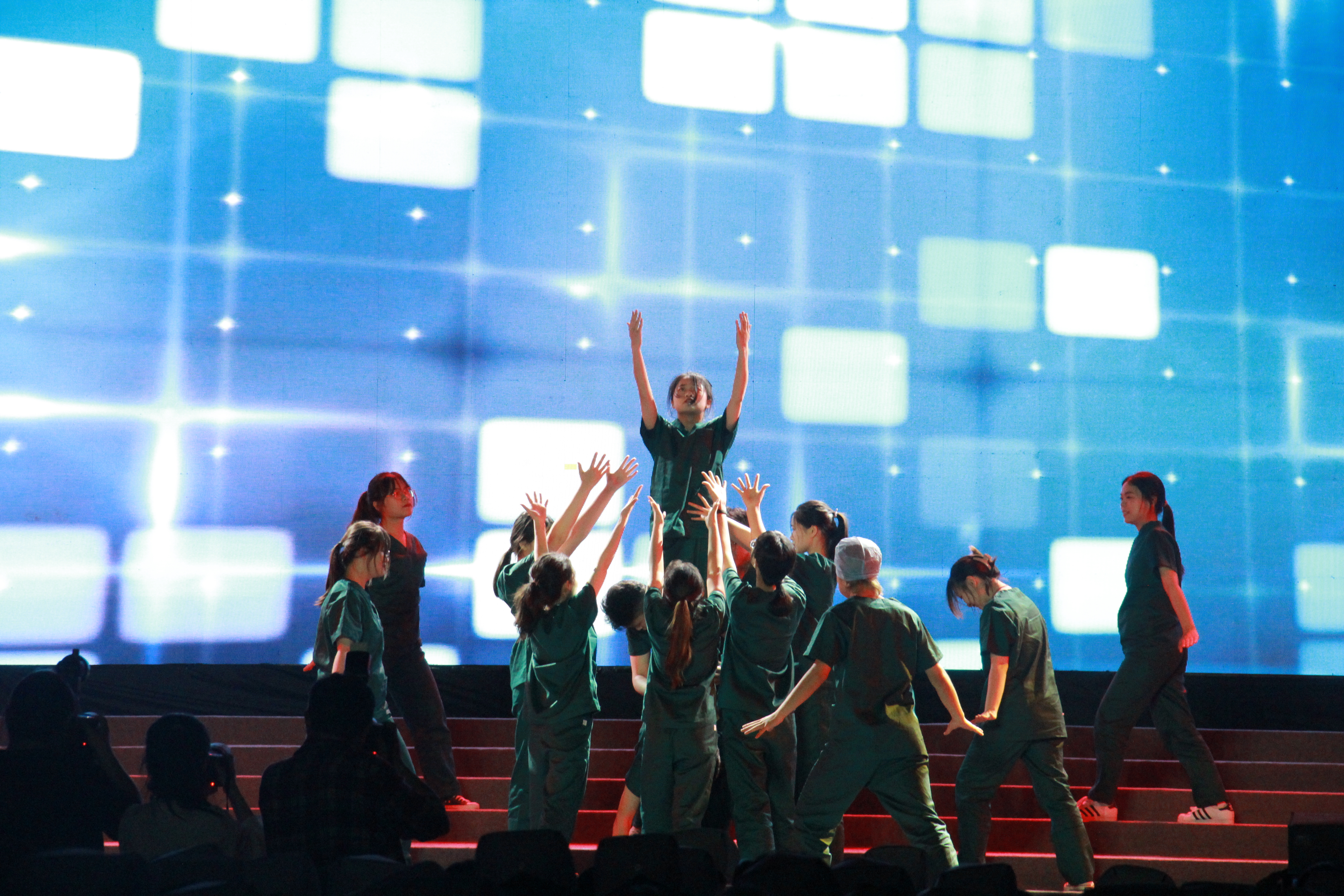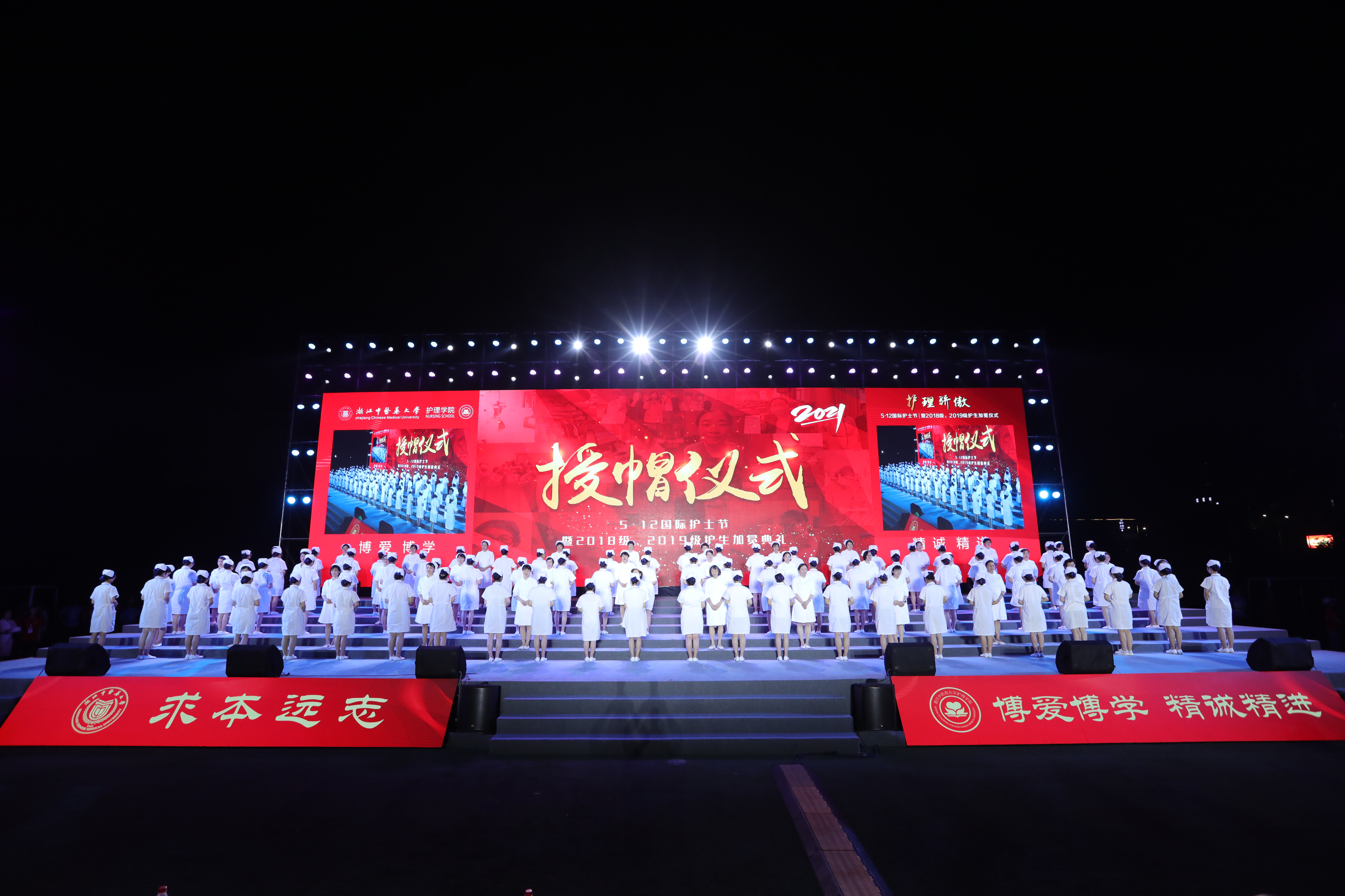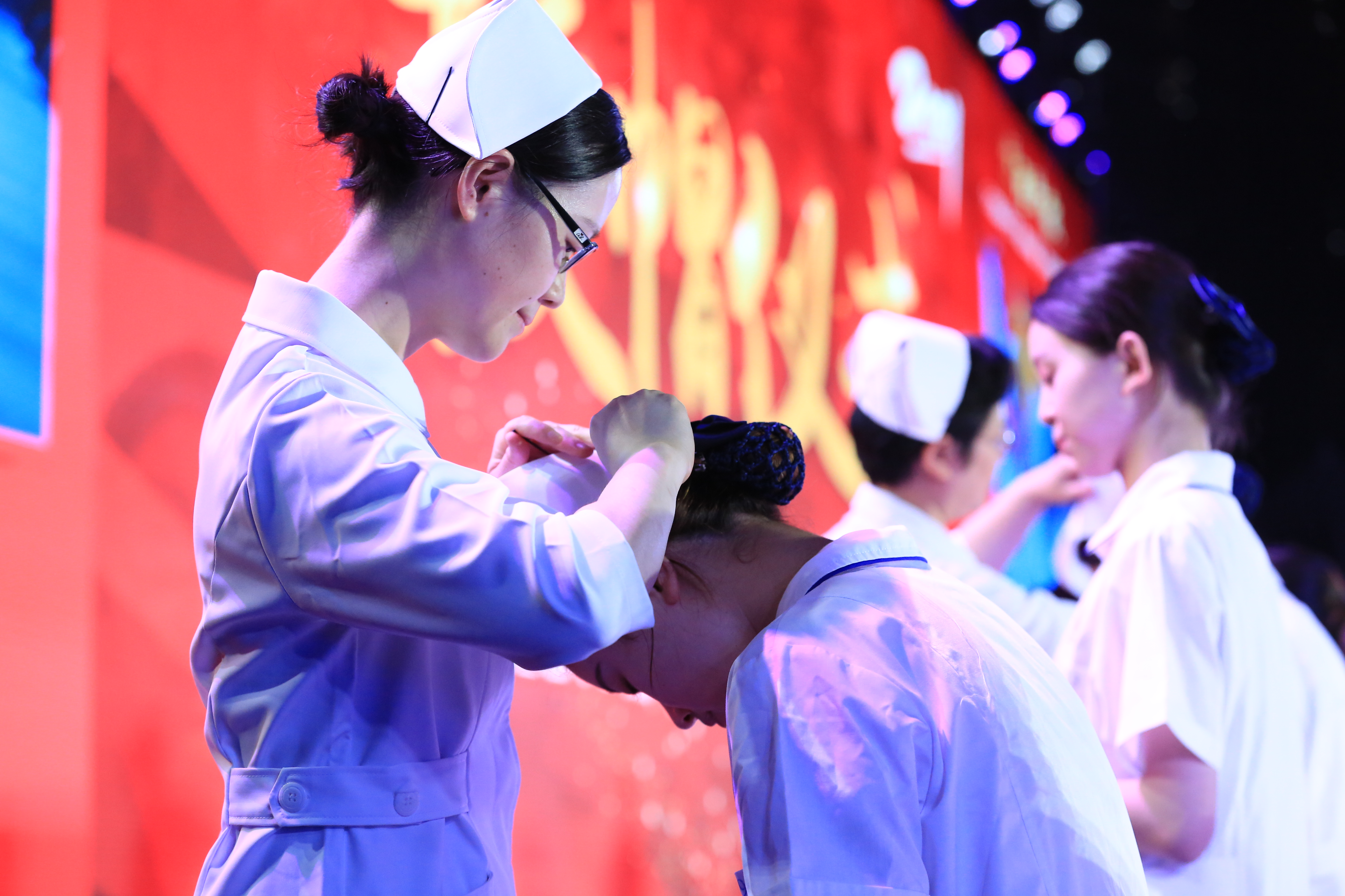 颁奖环节结束后,伴着神圣的背景音,100位护生身着白色护士装,面带微笑,手捧红烛灯迤逦而出,象征着点燃生命之灯。随后,630位参与授帽的同学分批入场,由护理前辈为其加冕。“我宣誓,我志愿成为一名白衣天使,谨奉人道主义精神,坚守救死扶伤信念,履行保护生命、促进健康、减轻病痛的职责,遵守护士职业道德规范,永葆白衣天使圣洁……把毕生精力献给护理事业。”在朗朗誓词中,新生代护理人接过前辈手中的蜡烛,加入白衣天使的行列,也象征着同学们献身护理事业的决心。在舞蹈《逆行天使》和合唱《红旗飘飘》中,活动落下帷幕。