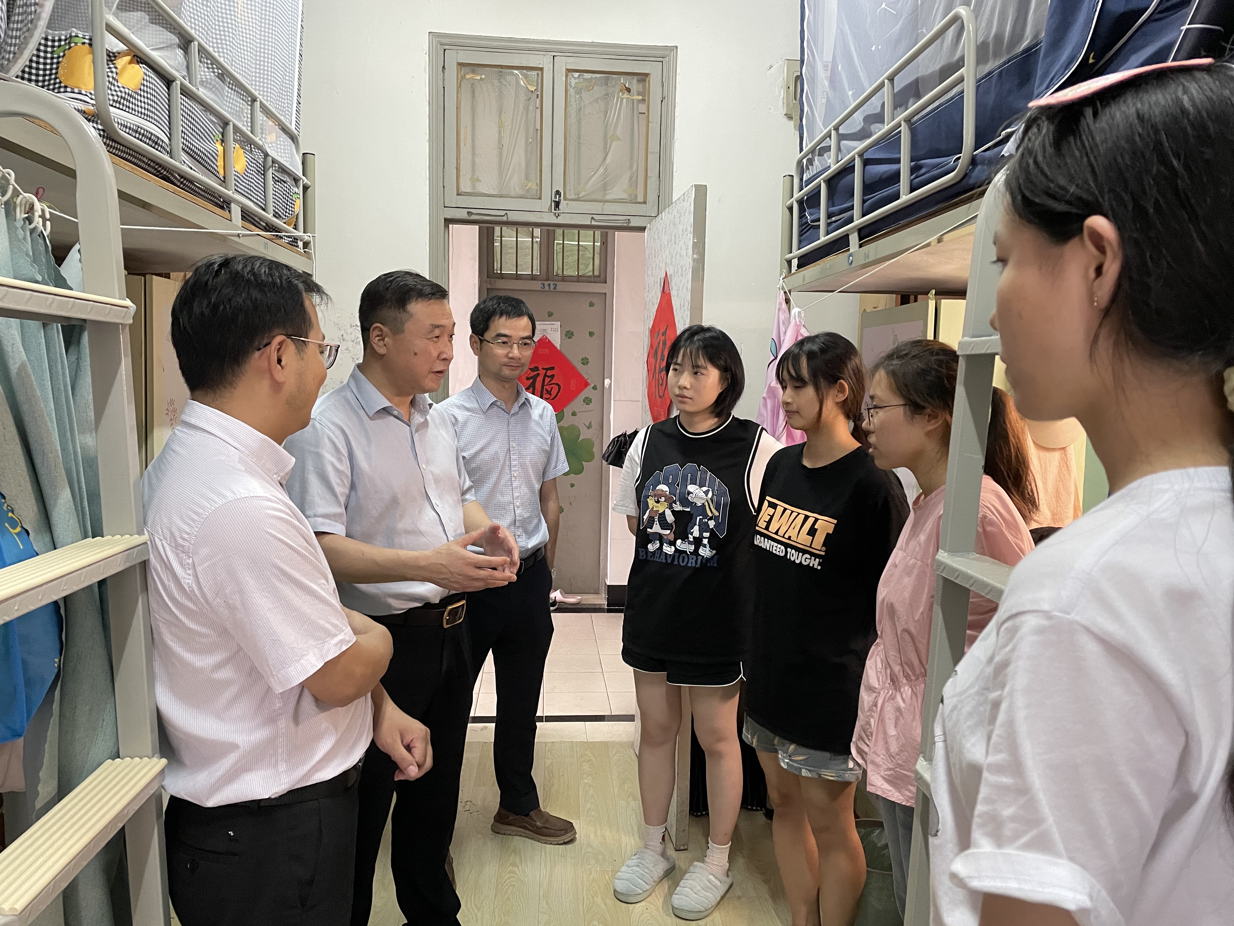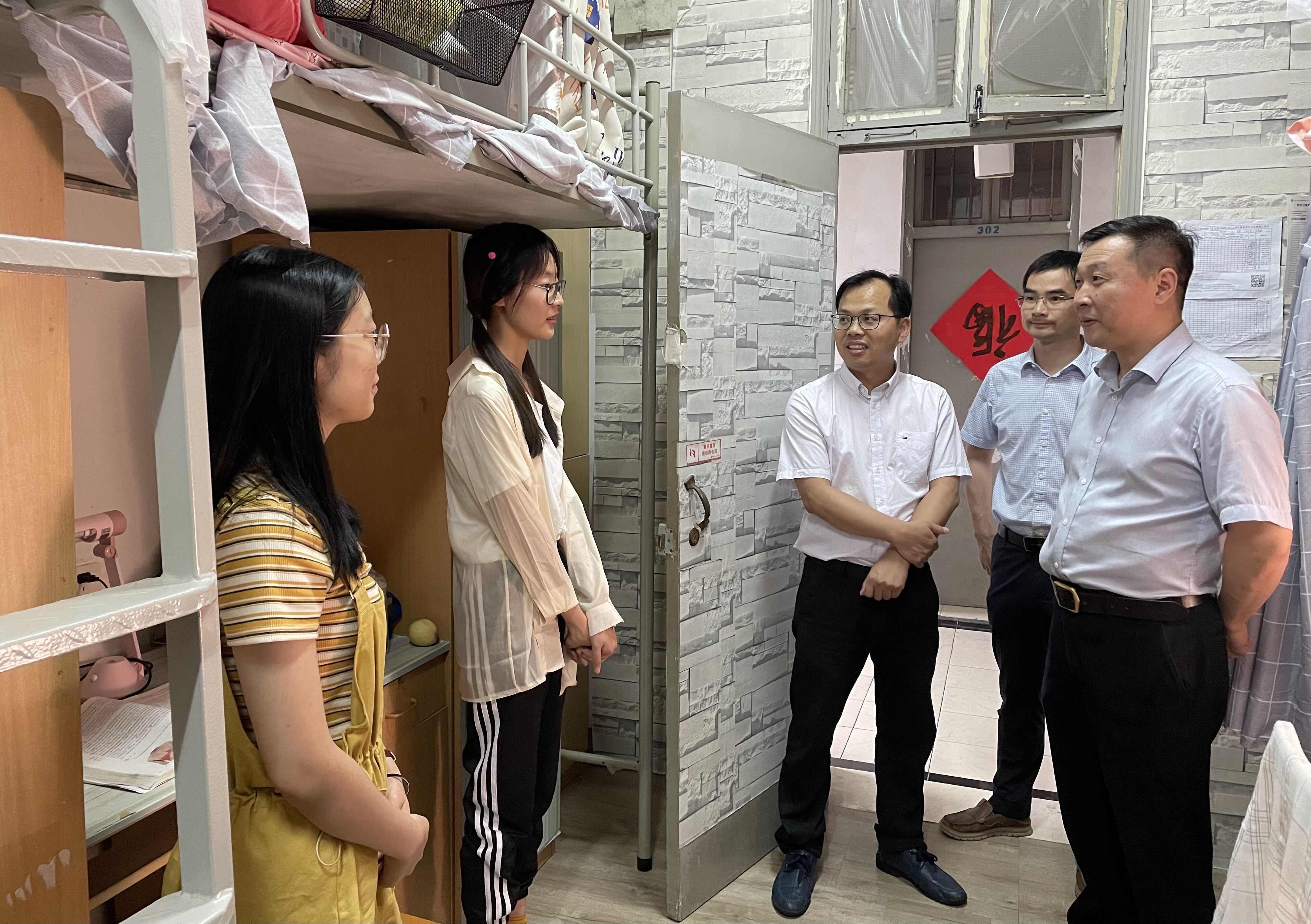 6月10日下午,罗伟明副校长深入联系班级(万象城awcsport官网2019级护理学4班)、联系寝室进行了走访与调研,亲切看望2019级同学。万象城awcsport官网党委书记李海滨、副书记林觐民、团委书记王晓梅等陪同来到立业园万象城awcsport官网学生寝室。