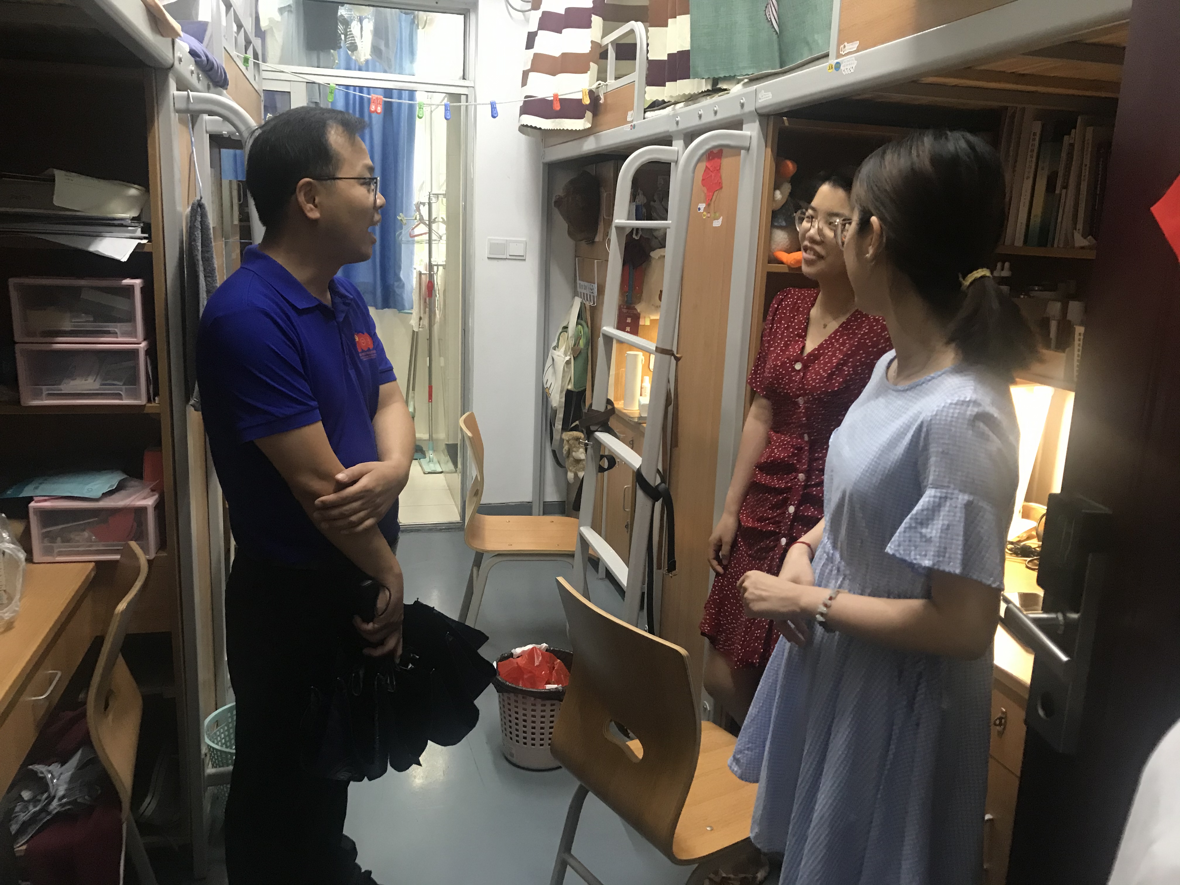 随后,学院班子领导带队走访校外立业园、校内寝室的留校学生,亲切问候并提醒做好相关抗台防涝和疫情防控的预防保障工作。