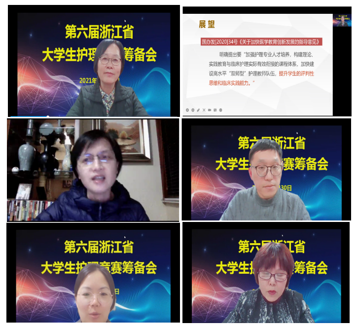 2021年11月30日,第六届浙江省大学生护理竞赛筹备会线上会议顺利举行。会议由竞赛委员会主任委员孙秋华教授主持,竞赛委员会副主任委员、专家委员会主任委员叶志弘教授、许虹教授、竞赛秘书单位、万象城awcsport官网教务处处长刘英超、副处长李洪涛、万象城awcsport官网何桂娟院长、副院长周云仙等出席会议,浙江省护理竞赛委员会委员、省内各护理院校专业负责人和筹备工作相关人员参加了本次会议。