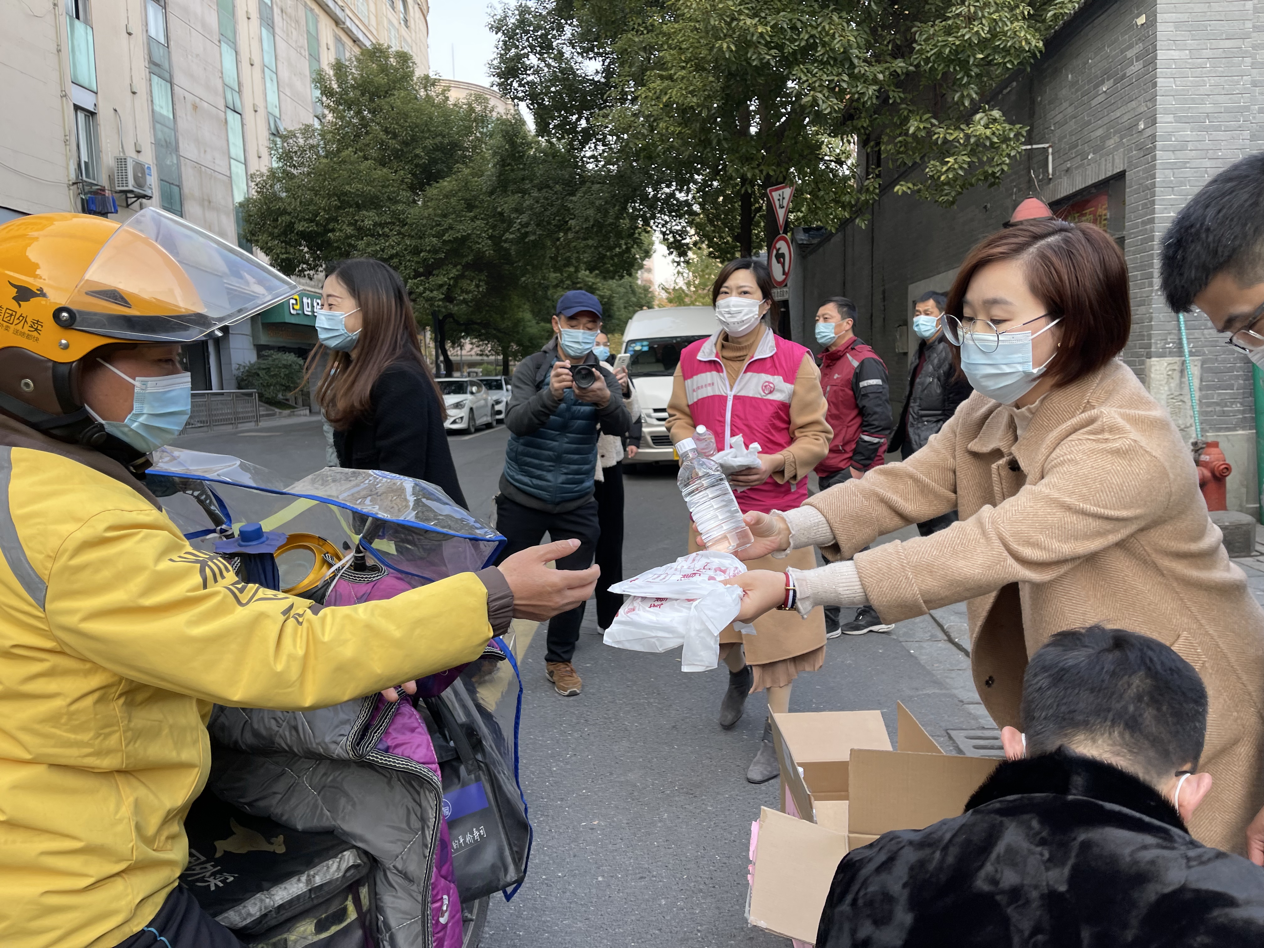 12月13日下午,万象城awcsport官网联合上城区妇联和湖滨街道党工委,将一批校友企业捐赠的价值上万元的防疫物资,分发给快递小哥、网约车司机等新业态劳动者,为我们城市运行默默付出与奉献的无名英雄送去深深的关怀与敬意。