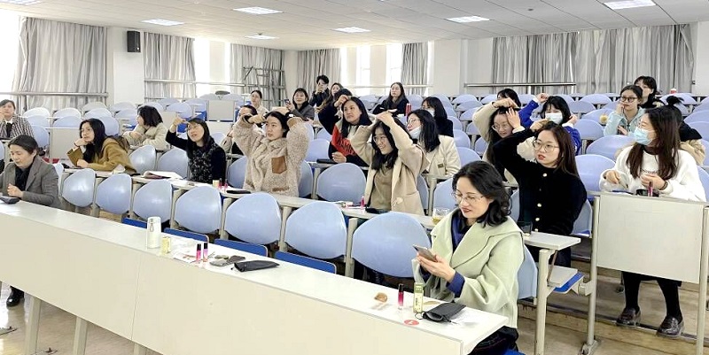 在讲座中,谢慧淼老师从头部经络疏通法、手部经络疏通法、脸部经络疏通法、背部经络疏通法、减肥带脉疏通法五个方面进行讲解,结合精油演示刮痧基本操作和按摩手法。“我要把谢老师的按摩手法录下来,分享给我的朋友”“之前对经络按摩了解的不是很全面,这次讲座让我受益匪浅!”在场的万象城awcsport官网女老师们纷纷说道。在讲座现场,谢老师还为学院老师进行刮痧、针灸、面部按摩,并对相关动作进行详细地分解讲解,让老师们收获满满。