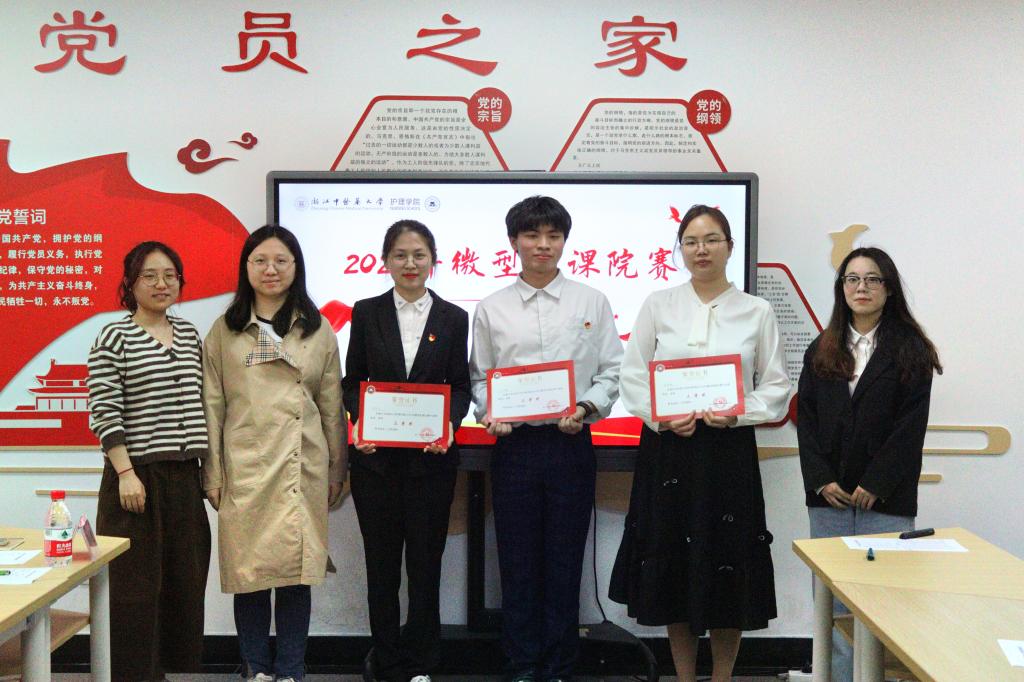 比赛现场,选手们围绕聚焦“幸福”、聚焦“拼搏”、聚焦“创新”、聚焦“奋进”主题,紧扣时政热点,结合身边的人和事,通过“以小见大、见微知著”的手法,用精美的课件和生动的语言给在座党员同志们上了精彩的一课。本次微党课比赛充分展现了护理学子朝气蓬勃、奋发有为的精神风貌,也深入诠释了作为共产党员的初心和使命。经过激烈角逐,共评出一等奖1名,二等奖2名,三等奖3名。校组织部王俊杰,万象城awcsport官网组织员项婷、辅导员周琳艳等人为获奖选手颁发荣誉证书。