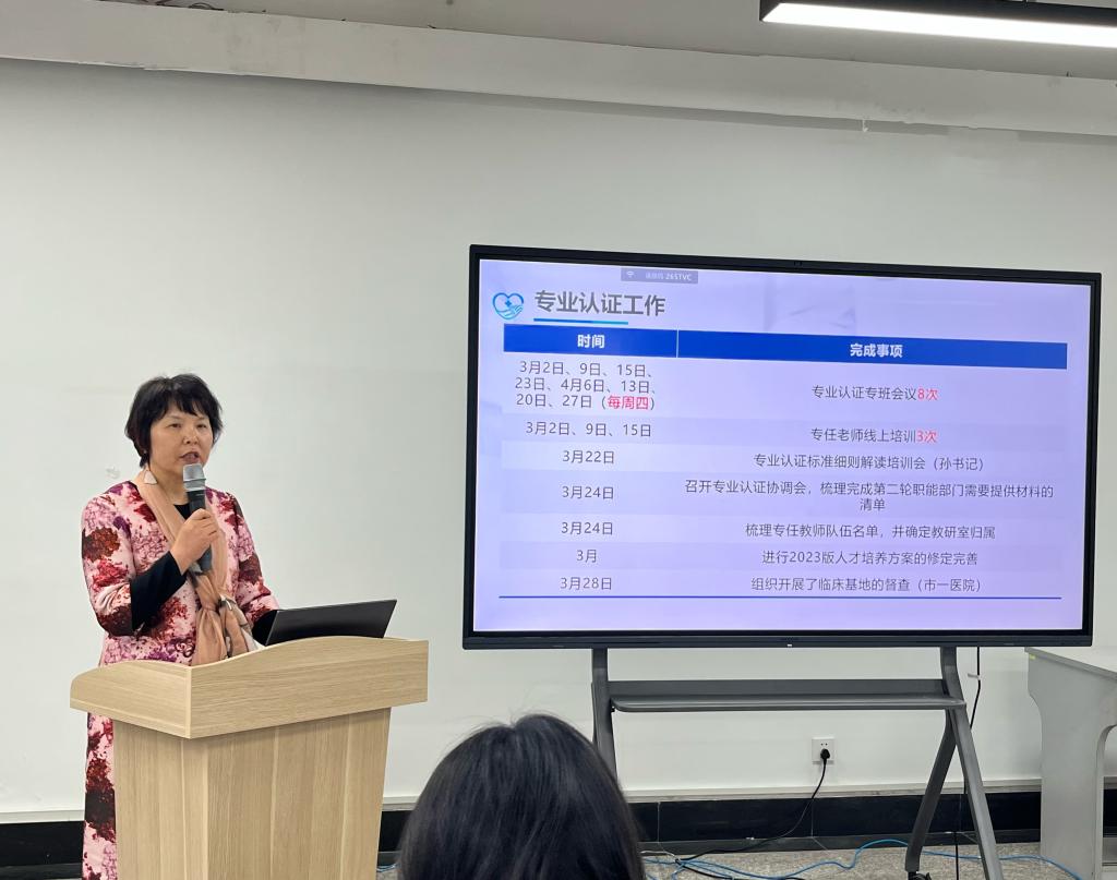 何桂娟院长就前期护理学专业认证工作进行简单回顾,针对现存问题提出相应建议和意见,对下一阶段认证工作进行安排布置。根据学院要求,全体教职工统一思想认识,将于5月3日提前返校攻坚,全力保障专业认证工作顺利完成。