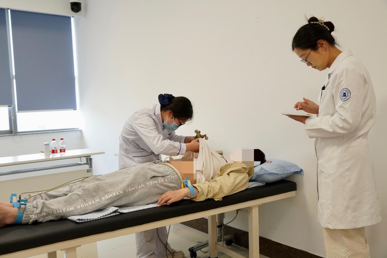 当天考核分上下午两场,选用不同案例,采用单循环模式进行。考生在博爱楼四楼415教室集合后,根据考核要求统一着装,并暂时上交手机等通讯工具。考核开始后,根据学号顺序,由现场工作人员分批引导至5楼候考室进行签到,签到后按系统叫号顺序依次完成各站考核,考试结束后领取通讯工具,离开考场。