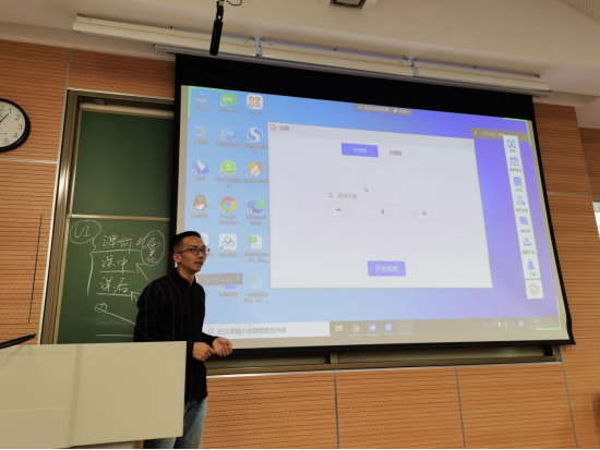随后,进入到培训环节。教务处现代教育技术中心卢启飞老师分享了“智慧教学工具的使用”,内容包括智慧教室互动教学软件、白板、互动提问等,并强调要合理、灵活运用这些工具,以保证教学质量和教学效果。